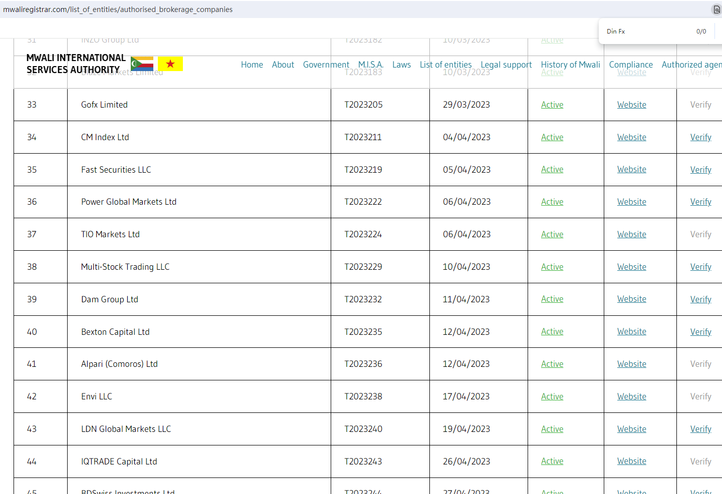According to its website, it is to be regulated by MWALI INTERNATIONAL SERVICES AUTHORITY (MISA). Upon investigation, no matching information was found in the MISA. Therefore, Trade Din FX is not regulated at all. Entrusting it with investors' funds is highly risky, as there are no legal protections in place to safeguard the funds.