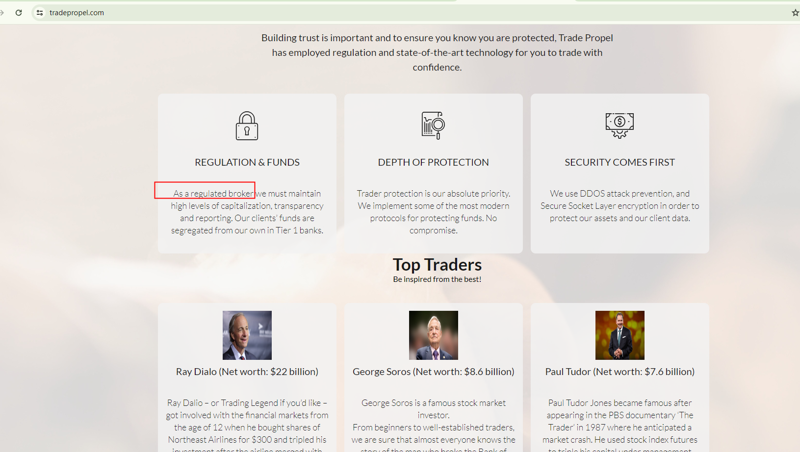 In essence, Trade Propel is not regulated by any governing body. Entrusting it with investors' funds is highly risky, as there are no legal protections in place to safeguard the funds.
