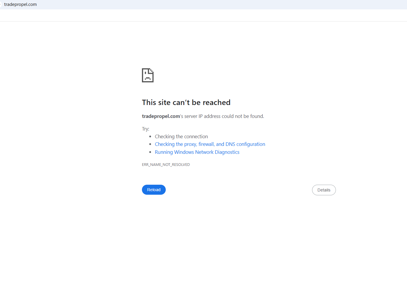 BrokersView found that the domain "https://tradepropel.com/" is currently inaccessible. This is widely regarded as a significant red flag, as the suspension of a broker's website often points to underlying regulatory or operational issues.
