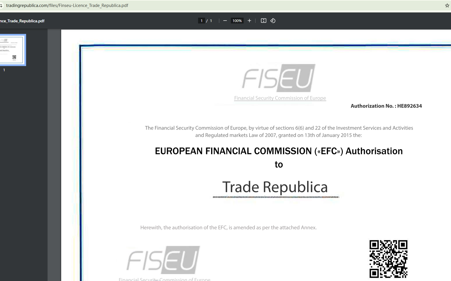 On October 28, 2024, the Comisión Nacional del Mercado de Valores (CNMV) added TRADE REPUBLICA to its warning list for providing investment services without authorization. https://www.cnmv.es/portal/ResultadoBusqueda.aspx?tipo=1&nombre=TRADINGREPUBLICA