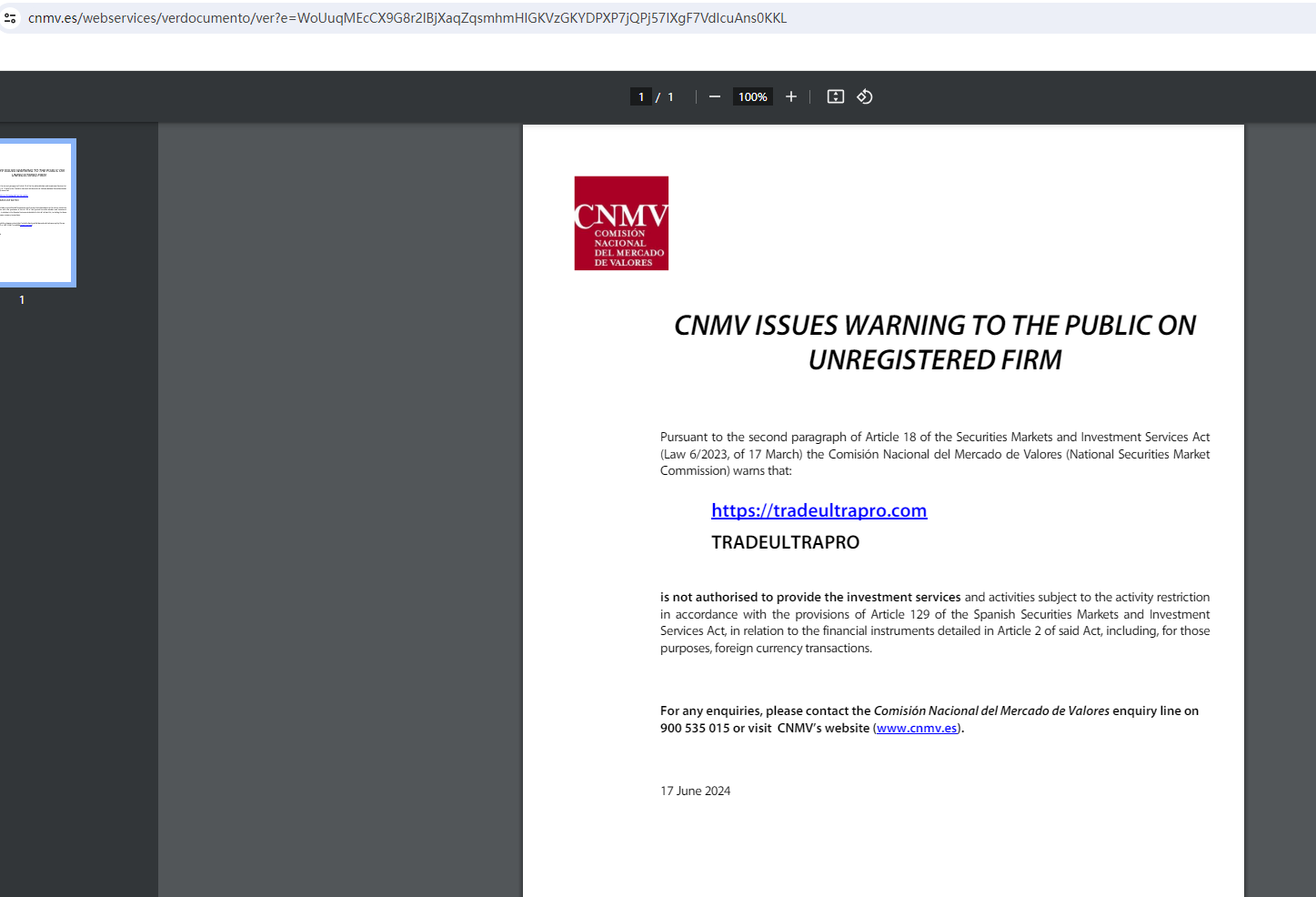 In addition, the Comisión Nacional del Mercado de Valores (CNMV) added Digi Trade to its warning list for providing investment services without authorization.
