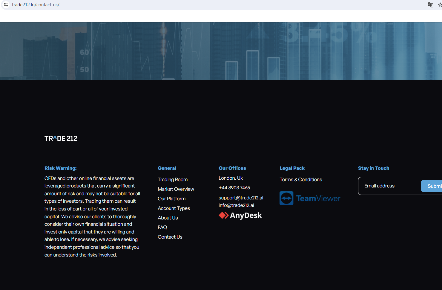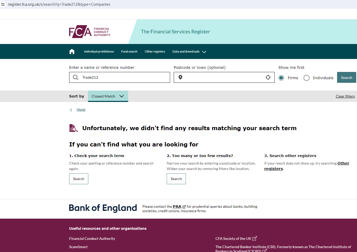 On May 13, 2024, the New Zealand Financial Markets Authority (NZ FMA) issued a warning, revealing a fake celebrity investment scam and exposing a list of fake trading platforms involved in this scam, including Trade212. https://www.fma.govt.nz/library/warnings-and-alerts/fake-celebrity-investment-scam/