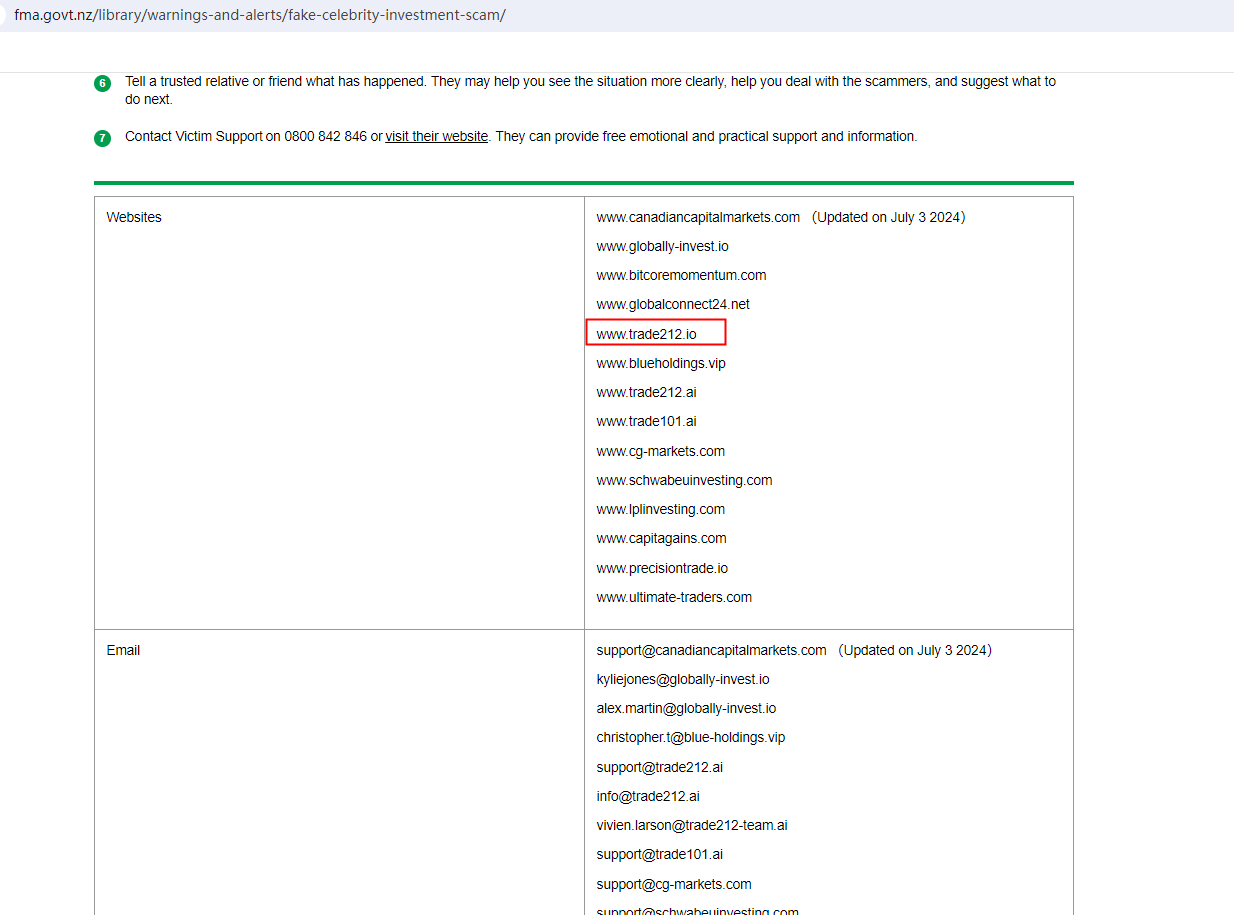 In addition, the New Zealand Financial Markets Authority (NZ FMA) issued a warning, revealing a fake celebrity investment scam and exposing a list of fake trading platforms involved in this scam, including Trade212.