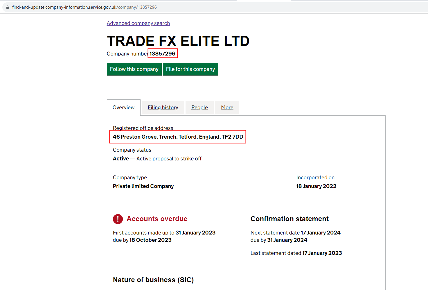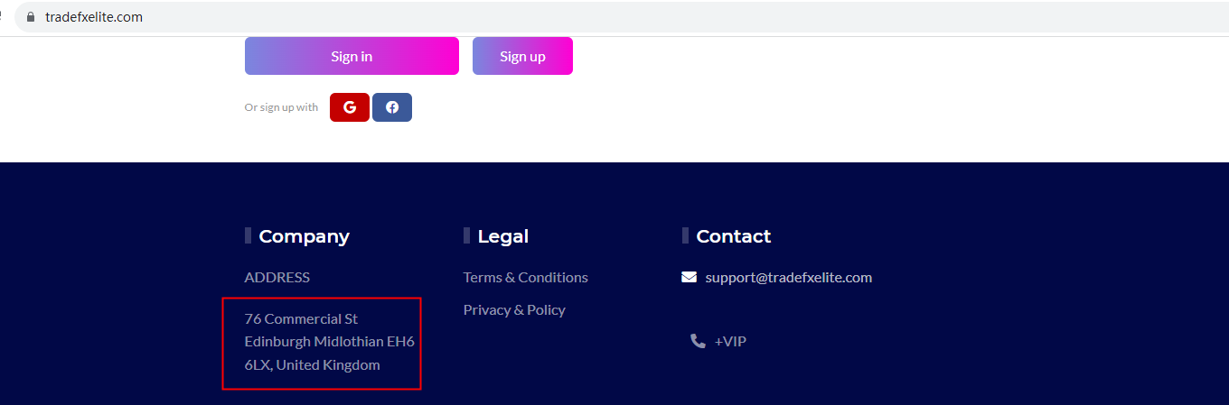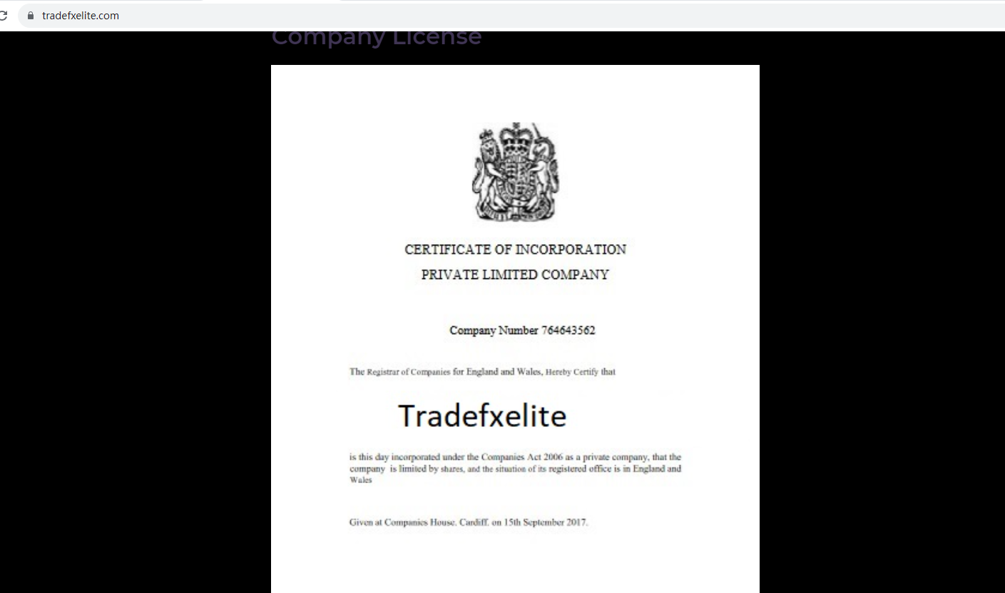 Tradefxelite claims to be registered under the UK Companies House (CH). We searched by the company name Tradefxelite but found a mismatch for one company TRADE FX ELITE LTD which had a different company number and registered office address than Tradefxelite, when we searched by company number 764643562 there were no results.