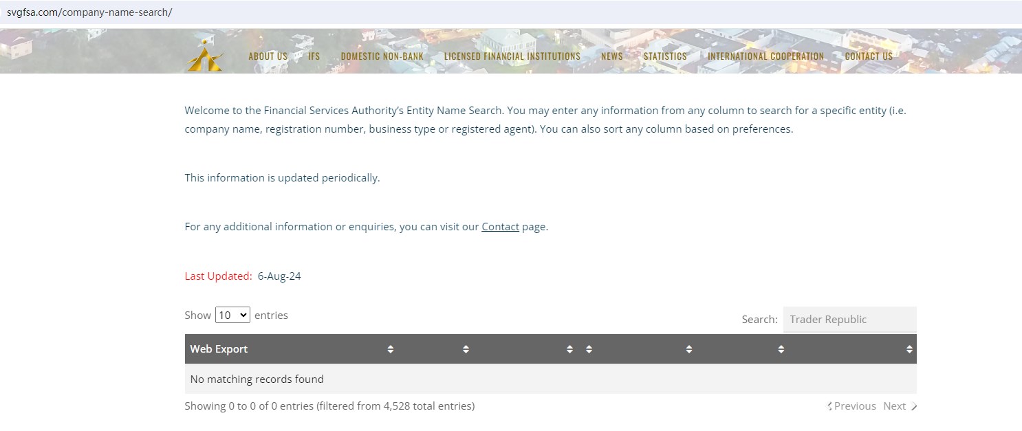 We also didn't find any results in the Financial Services Authority in St. Vincent and the Grenadines(SVG FSA), an offshore authority that doesn't license forex trading brokerage activities.