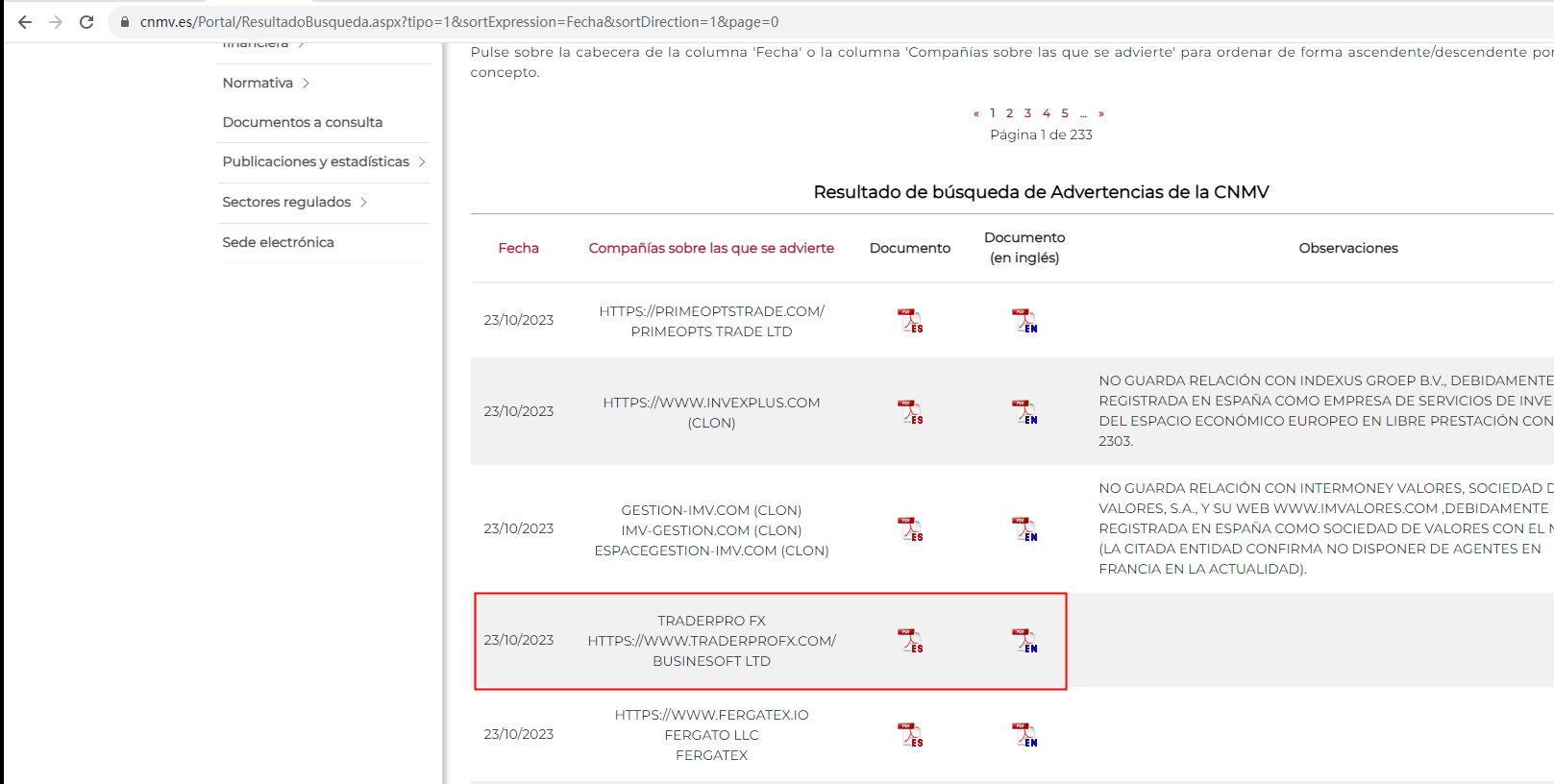 On 23 October 2023, the Comisión Nacional del Mercado de Valores (CNMV) issued a warning that TRADERPROFX was providing financial services or products without authorisation. You may visit: https://www.cnmv.es/Portal/ResultadoBusqueda.aspx?tipo=1&sortExpression=Fecha&sortDirection=1&page=0
