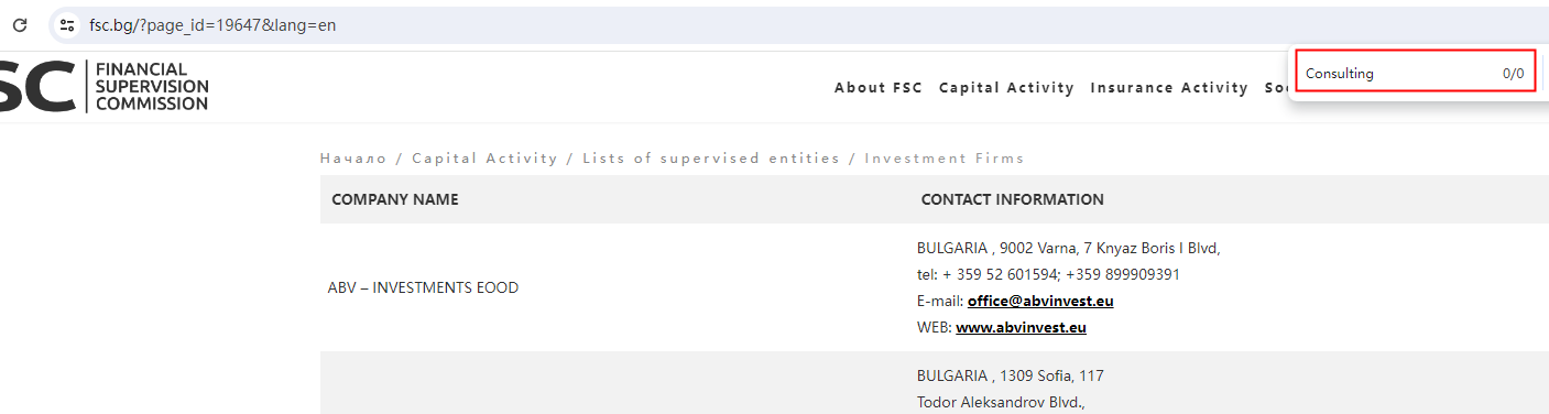 We searched the Bulgaria Financial Supervision Commission (FSC) but found no matching results.