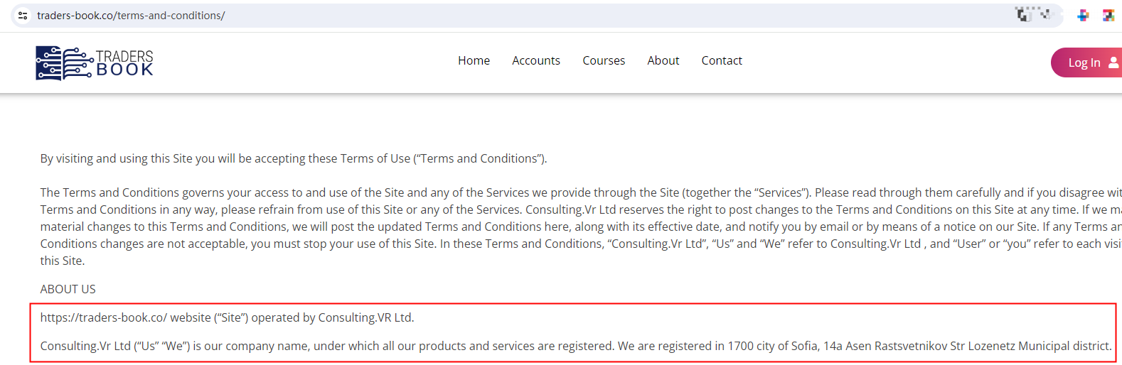 Traders Book claims to be operated by Consulting.VR Ltd, which is registered in Bulgaria.
