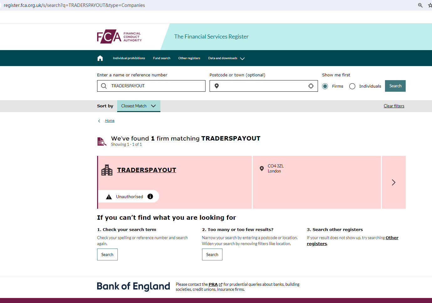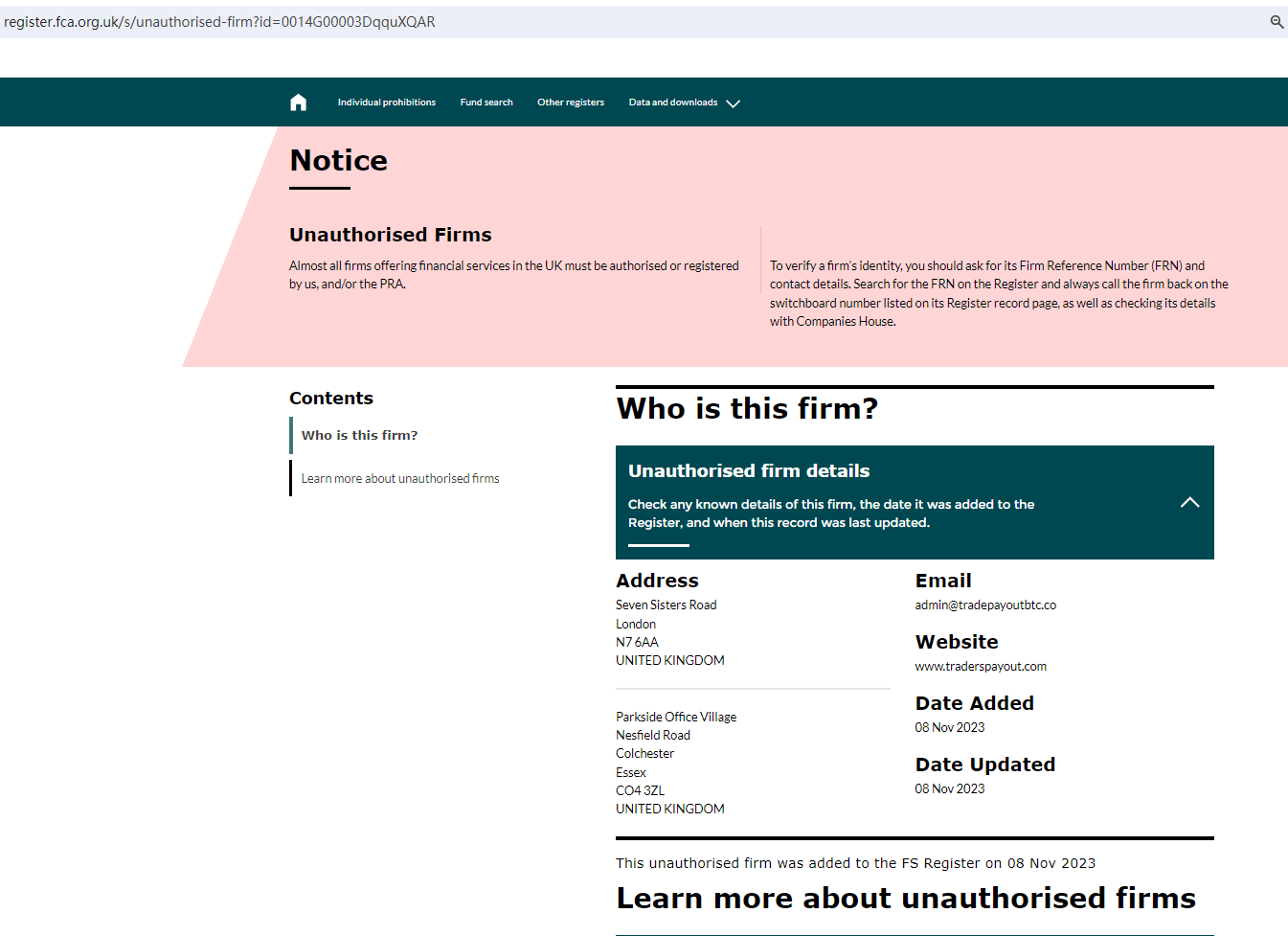 According to its website, it is registered in the UK, upon investigation, we found that its registration status on the FCA was "Unauthorised".
