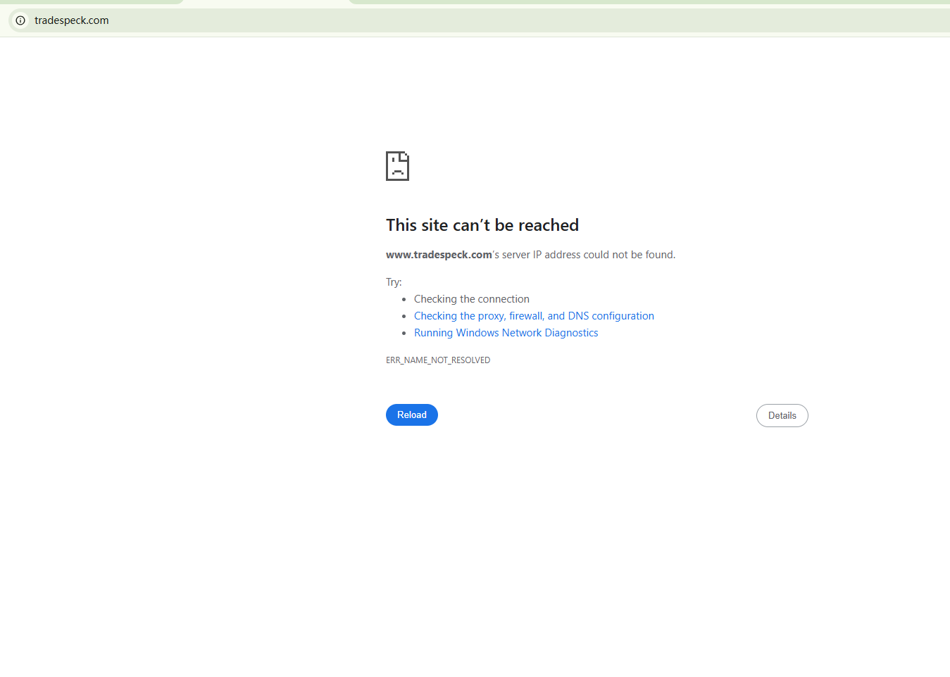 BrokersView found that the domain "https://www.tradespeck.com/" is currently inaccessible. This is widely regarded as a significant red flag, as the suspension of a broker's website often points to underlying regulatory or operational issues.