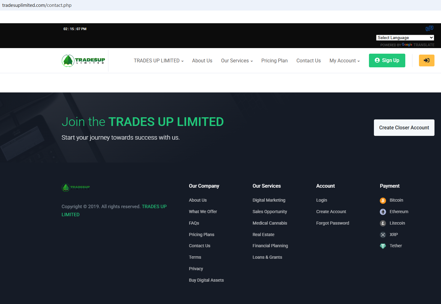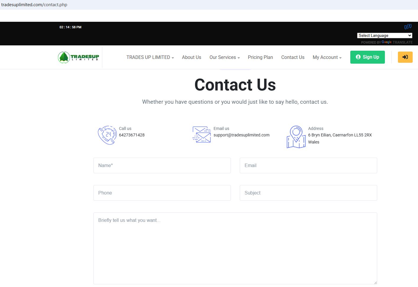 According to its website, it is located in the UK. Upon investigation, we found that the Financial Conduct Authority (FCA) issued a warning against TRADESUP LIMITED, believing this company might be providing financial services or products without proper authorization in the UK.
