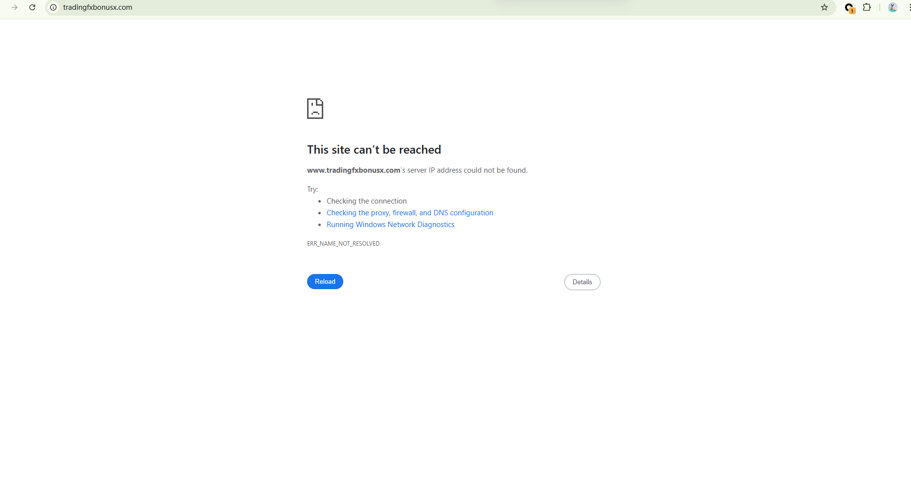 BrokersView found that the domain "http://www.tradingfxbonusx.com/" is currently inaccessible. This is widely regarded as a significant red flag, as the suspension of a broker's website often points to underlying regulatory or operational issues.