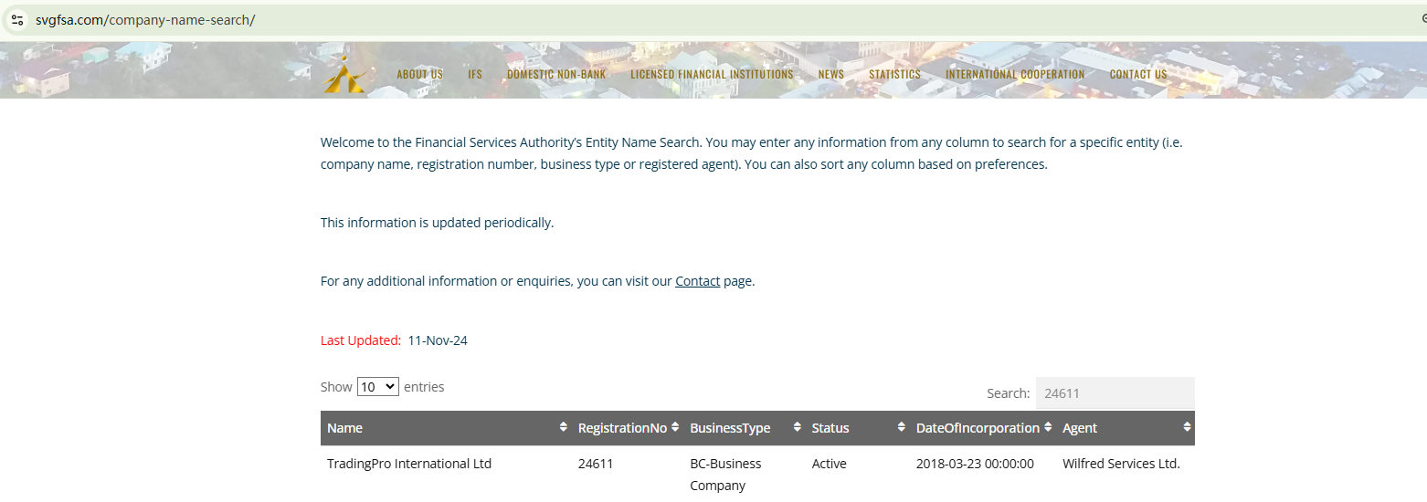 TradingPro claims to be owned and operated by TradingPro International Limited, allegedly licensed in Vanuatu under the registration number 40178, and incorporated in Saint Vincent and the Grenadines with license number 24611 BC 2018. They state they are regulated by the Financial Services Commission (FSC) of Mauritius.