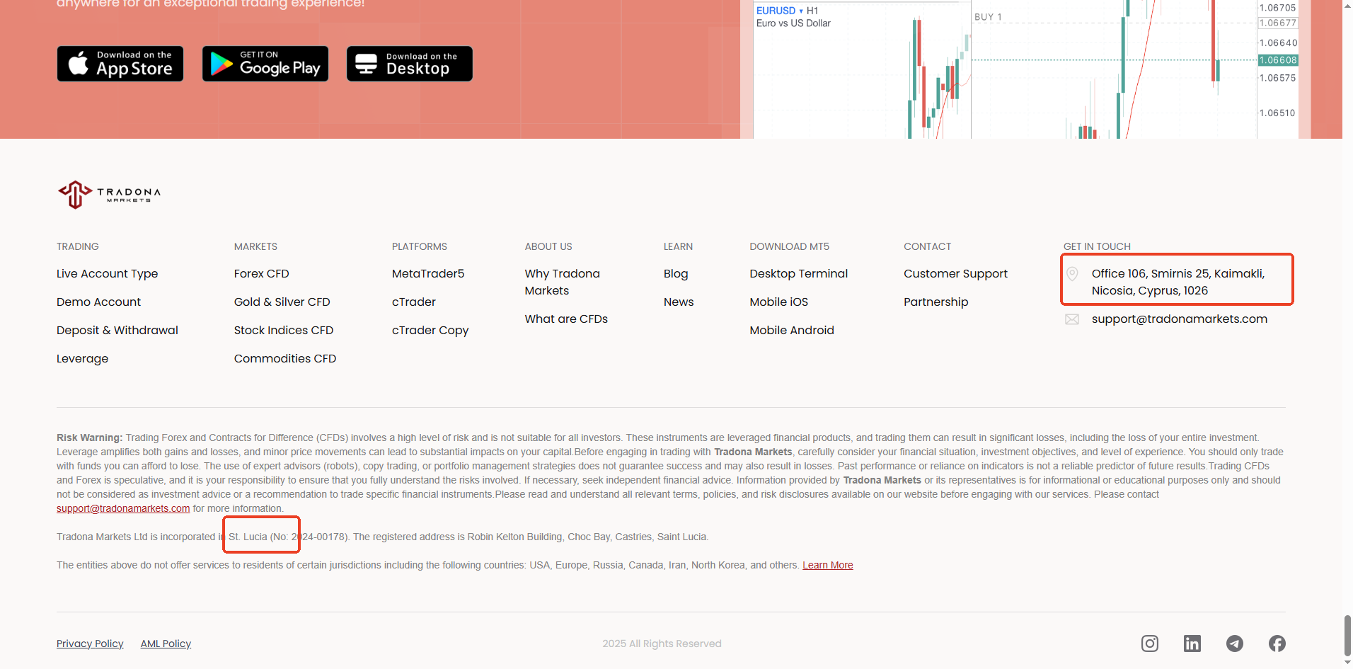 Tradona Markets claims to be registered in Saint Lucia, and while it is true that we find a matching company registered with the Saint Lucia International Financial Centre (IFC), this registration only grants it International Business Company (IBC) status. This is not a financial license, and IFC does not regulate or license forex trading activities.