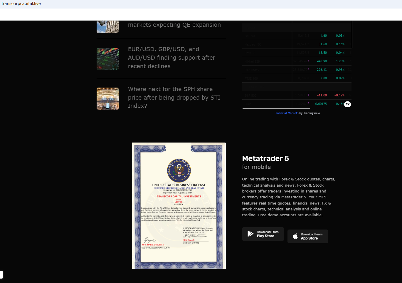 BrokersView found that the domain "https://www.transcorpcapital.live/" is currently inaccessible. This is widely regarded as a significant red flag, as the suspension of a broker's website often points to underlying regulatory or operational issues.