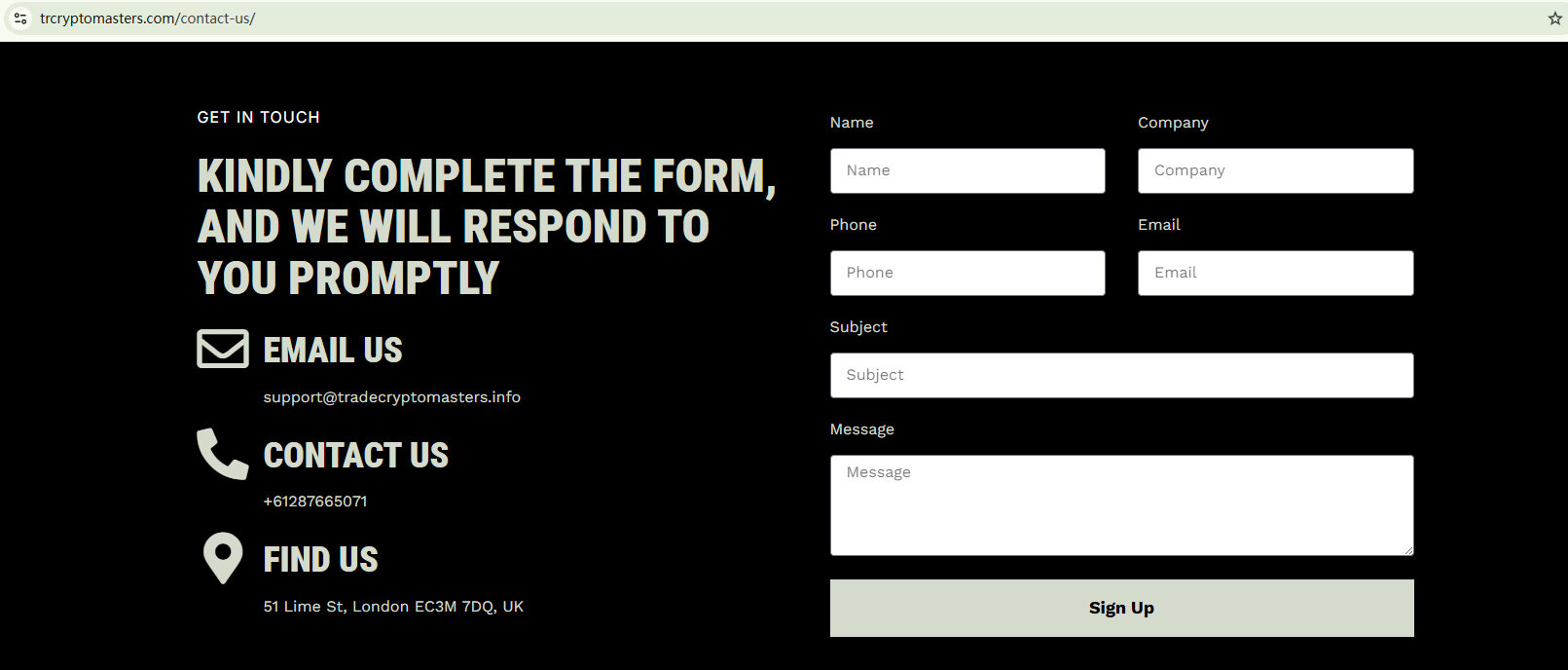 TRCryptoMasters doesn't disclose any information about its legal forms and regulatory compliance. While the company claims to be domiciled in the UK, there are no indications that it is registered with the Financial Conduct Authority (FCA). The FCA has issued a warning about TRCryptoMasters to advise investors to stay clear of this unauthorized financial firm.