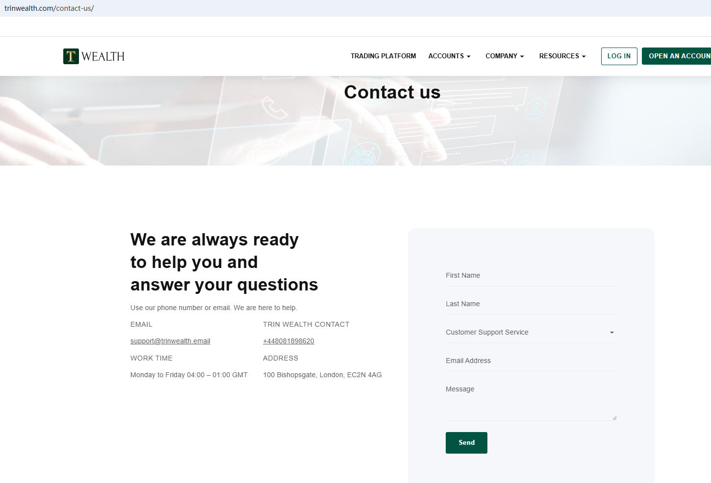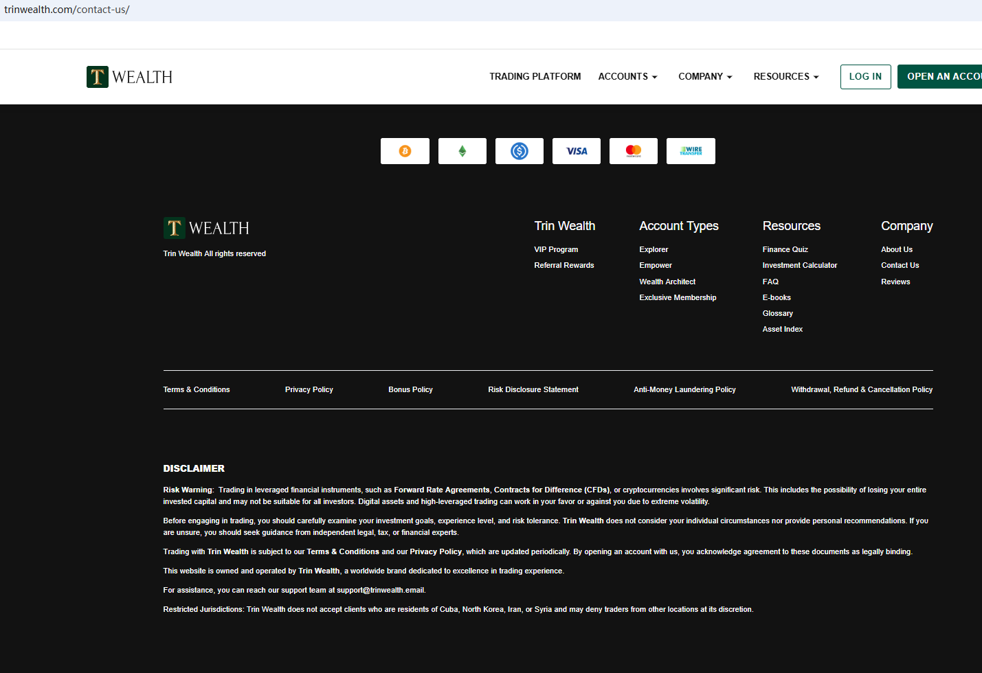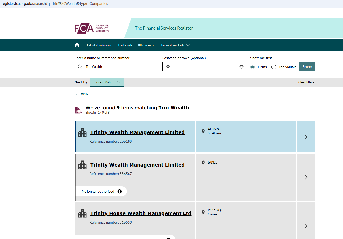 According to its website, it is located in the UK. Upon investigation, no matching information was found in the Financial Conduct Authority (FCA). In addition, the British Columbia Securities Commission (BCSC) issued a warning that Trin Wealth was providing financial services or products without authorisation.