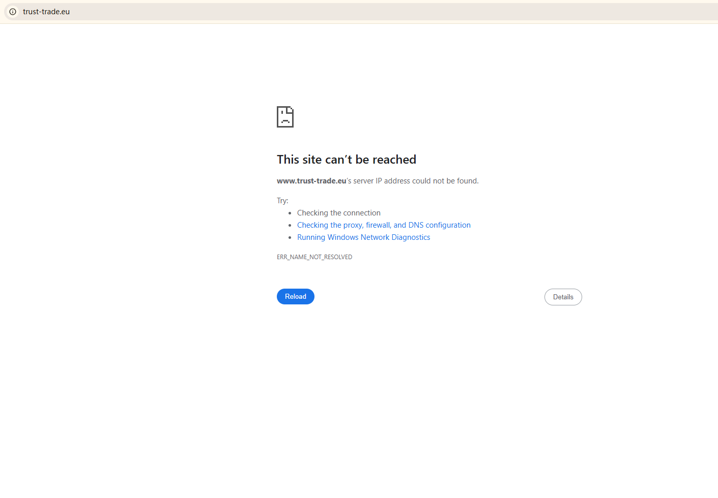 BrokersView found that the domain "https://www.trust-trade.eu/" is currently inaccessible. This is widely regarded as a significant red flag, as the suspension of a broker's website often points to underlying regulatory or operational issues.