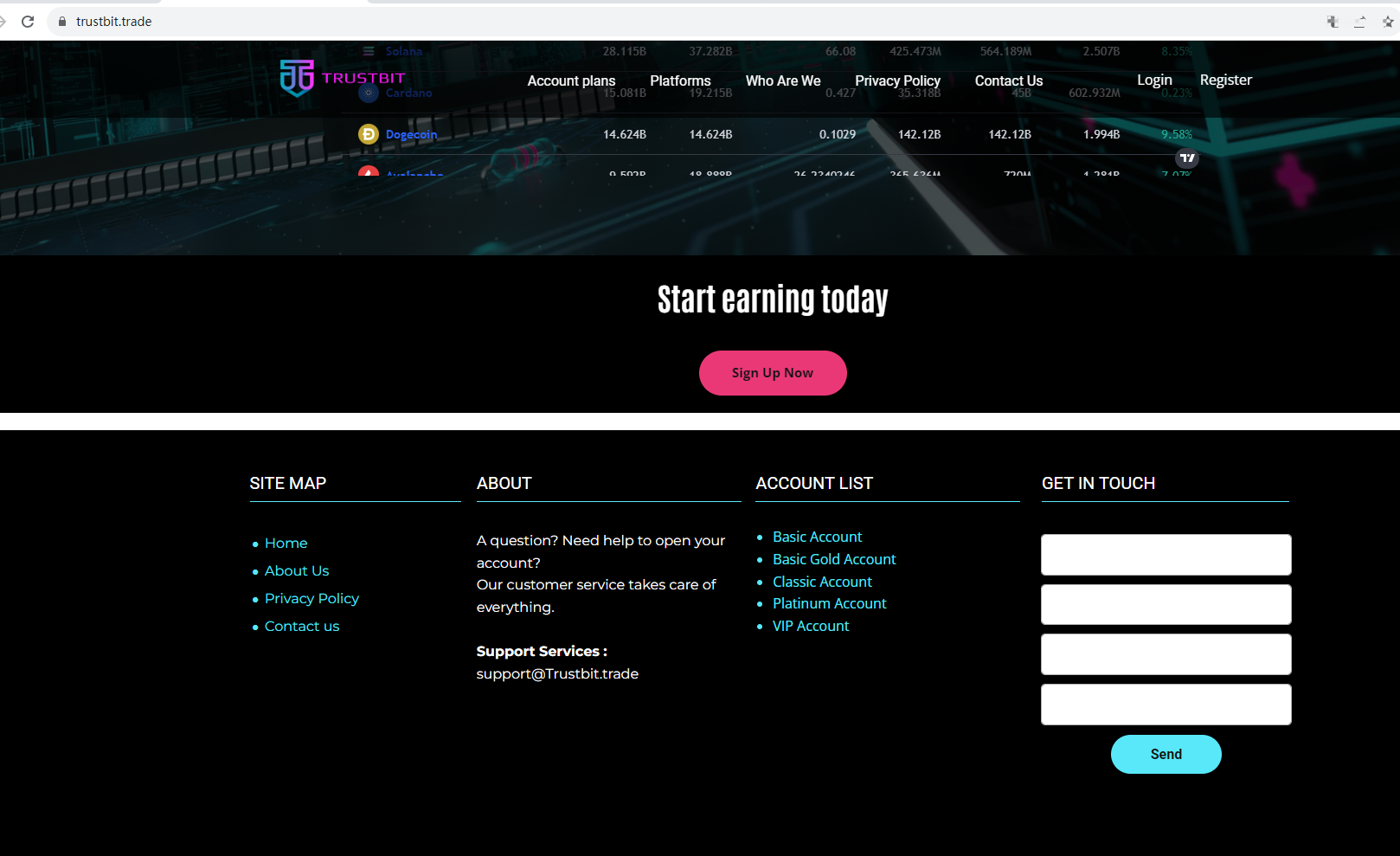 Trustbit claims to be a reliable company without presenting any information about its regulation or contact. The lack of such important information may be a distinct signal of an unlicensed broker, as regulated companies always present their accreditations and licenses in a prominent position. It is a red flag.
