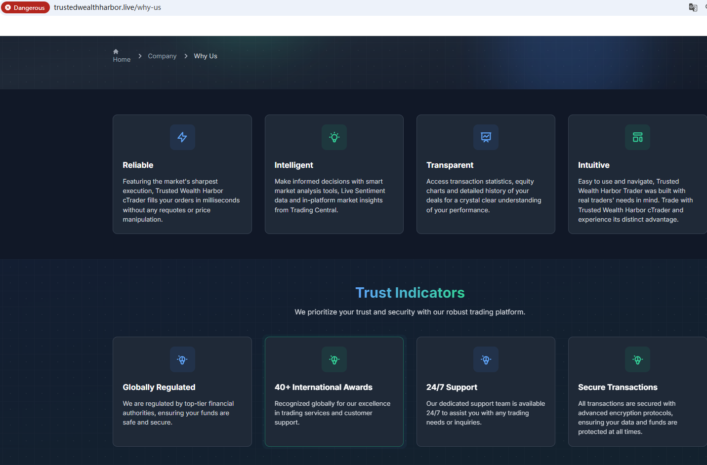 Trusted Wealth Harbor is not regulated by any authority. Therefore, Trusted Wealth Harbor is a scam.