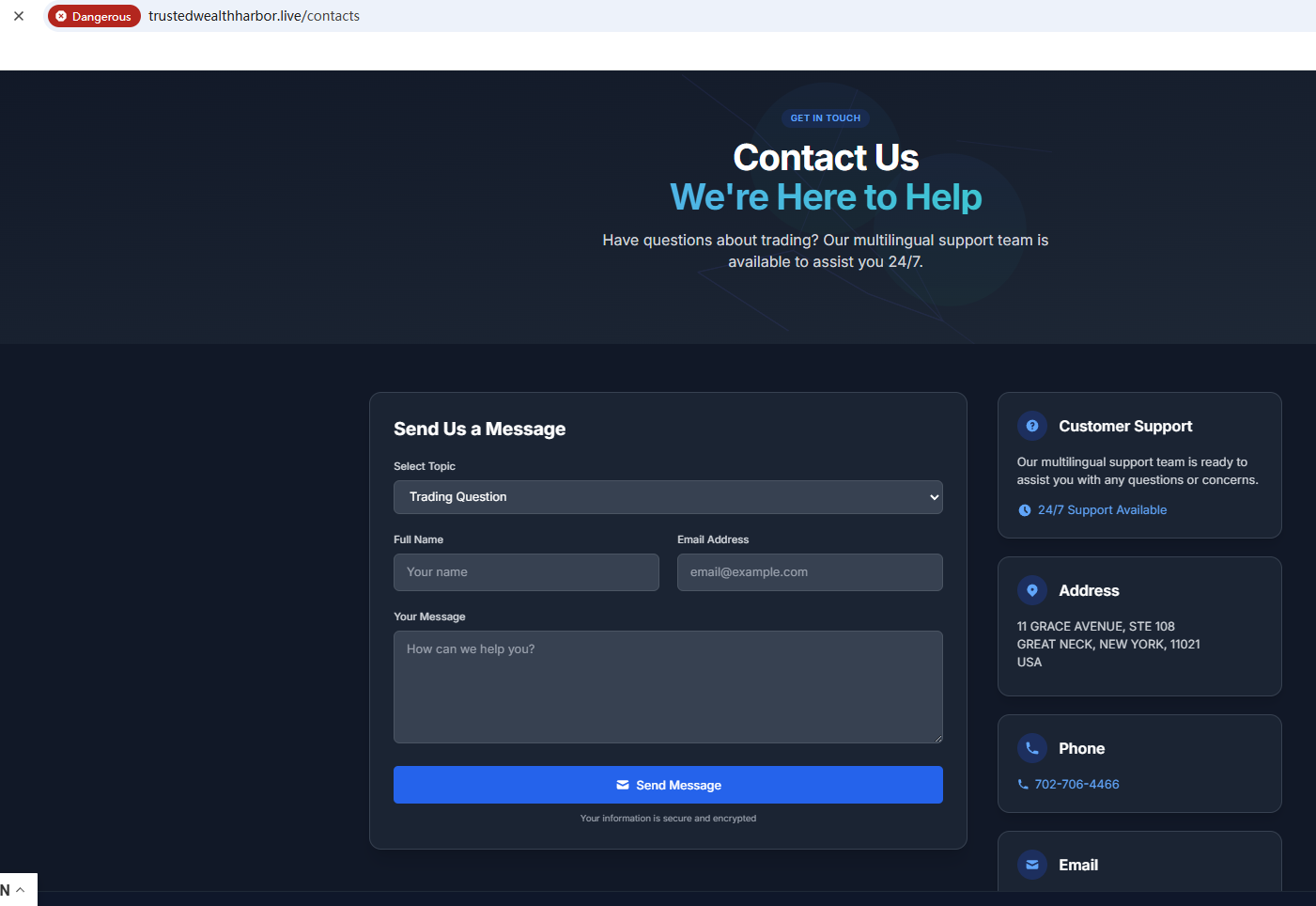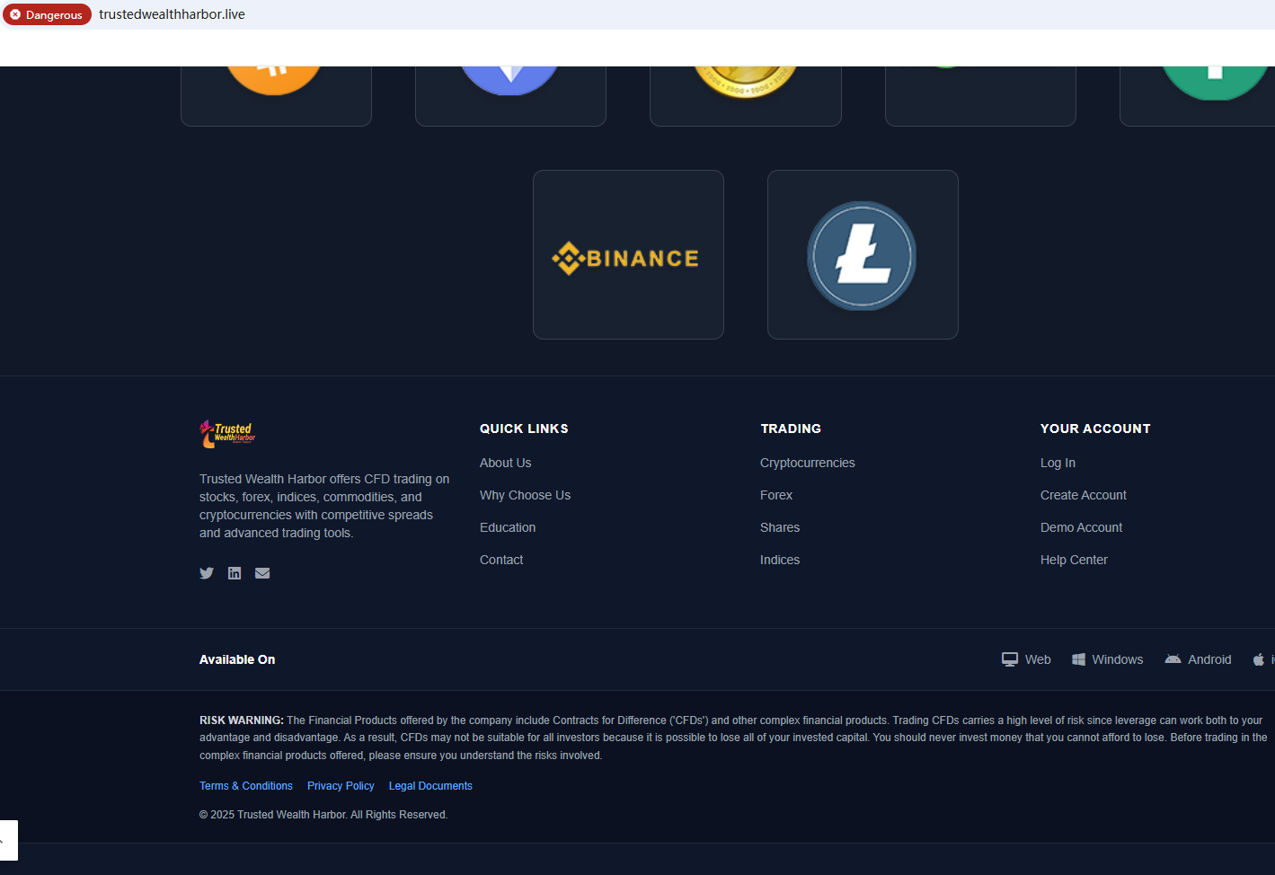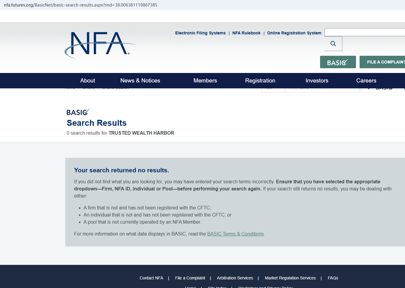 According to its website, it repeatedly emphasizes that it is subject to top global regulation, but it does not display a single piece of evidence of strong regulation on the website. It claims that its office is located in the United States, but after searching, no matching information was found in the National Futures Association (NFA). In addition, the Financial Conduct Authority (FCA) issued a warning regarding Trusted Wealth Harbor, suspecting that this company may be offering financial services or products without the necessary authorization.