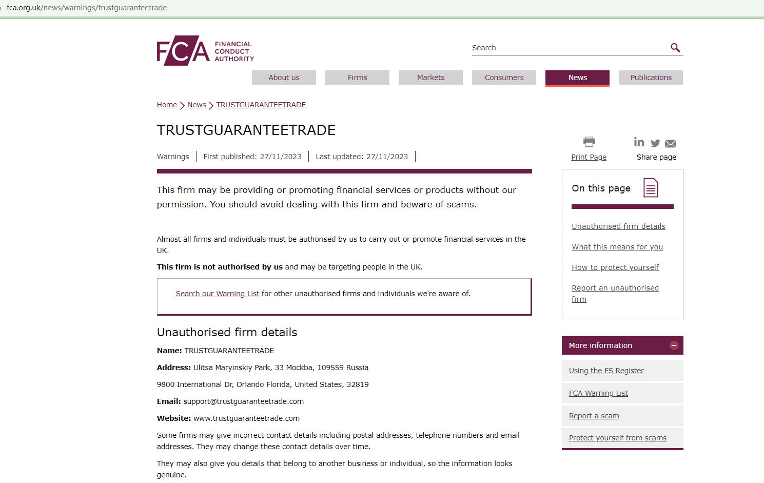 What's more, the Financial Conduct Authority (FCA) has issued a warning against TRUSTGUARANTEETRADE, stating that it is not authorized to solicit investors within the UK. This negative situation underscores the substantial risks involved.