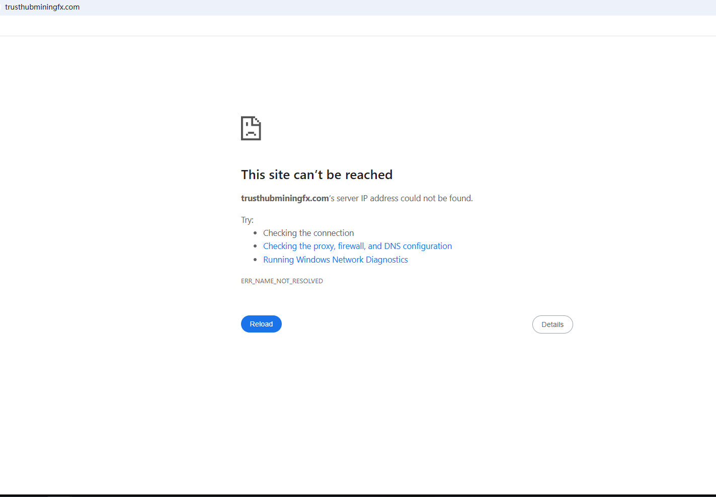 BrokersView found that the domain "trusthubminingfx.com" is currently inaccessible. This is widely regarded as a significant red flag, as the suspension of a broker's website often points to underlying regulatory or operational issues.