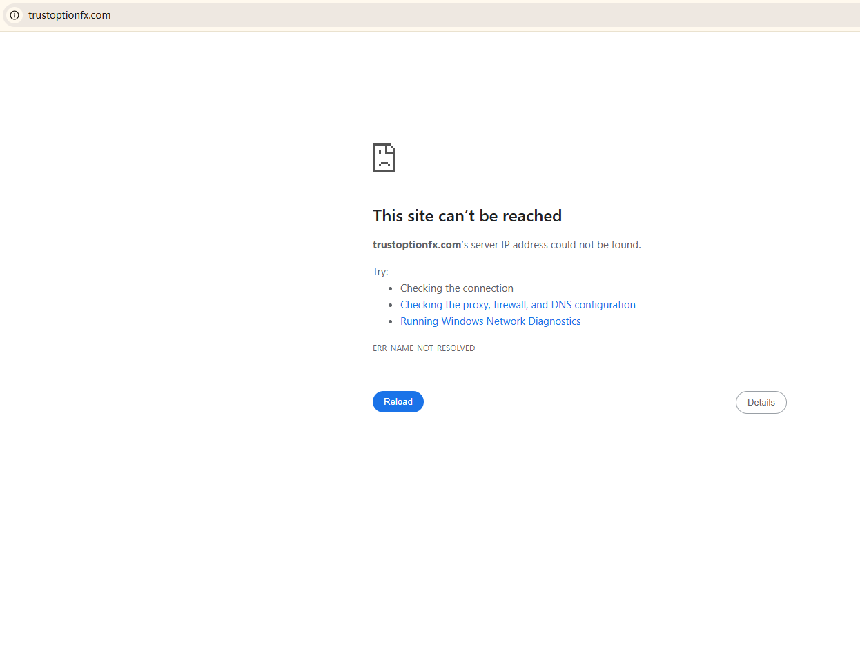 BrokersView found that the domain "https://trustoptionfx.com/" is currently inaccessible. This is widely regarded as a significant red flag, as the suspension of a broker's website often points to underlying regulatory or operational issues.