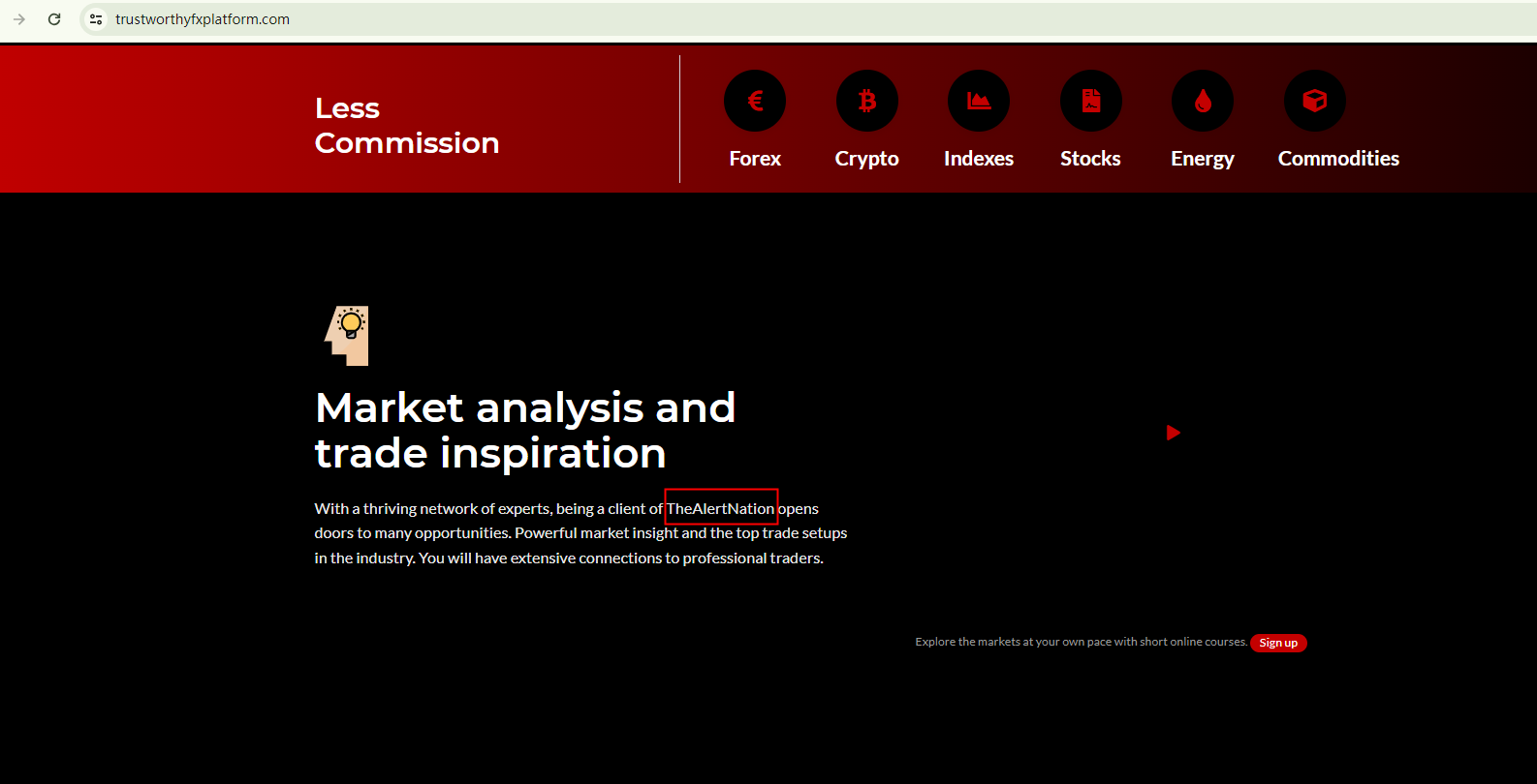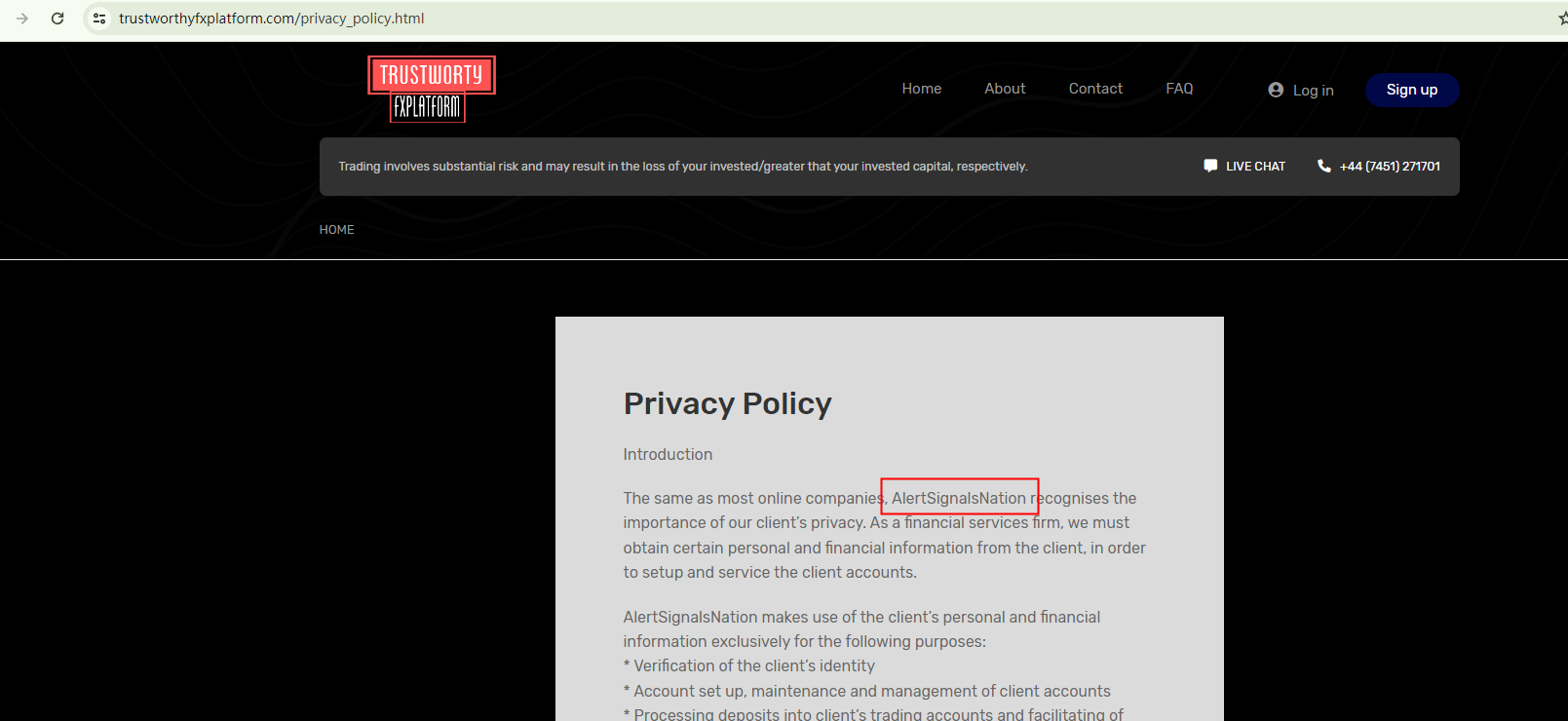 This broker uses a website template, commonly associated with scammers, that provides content and graphic designs, making it effortless for operators to build a website. It has even failed to replace all brand names with its own, leading to instances where it refers to itself as TheAlertNation sometimes.