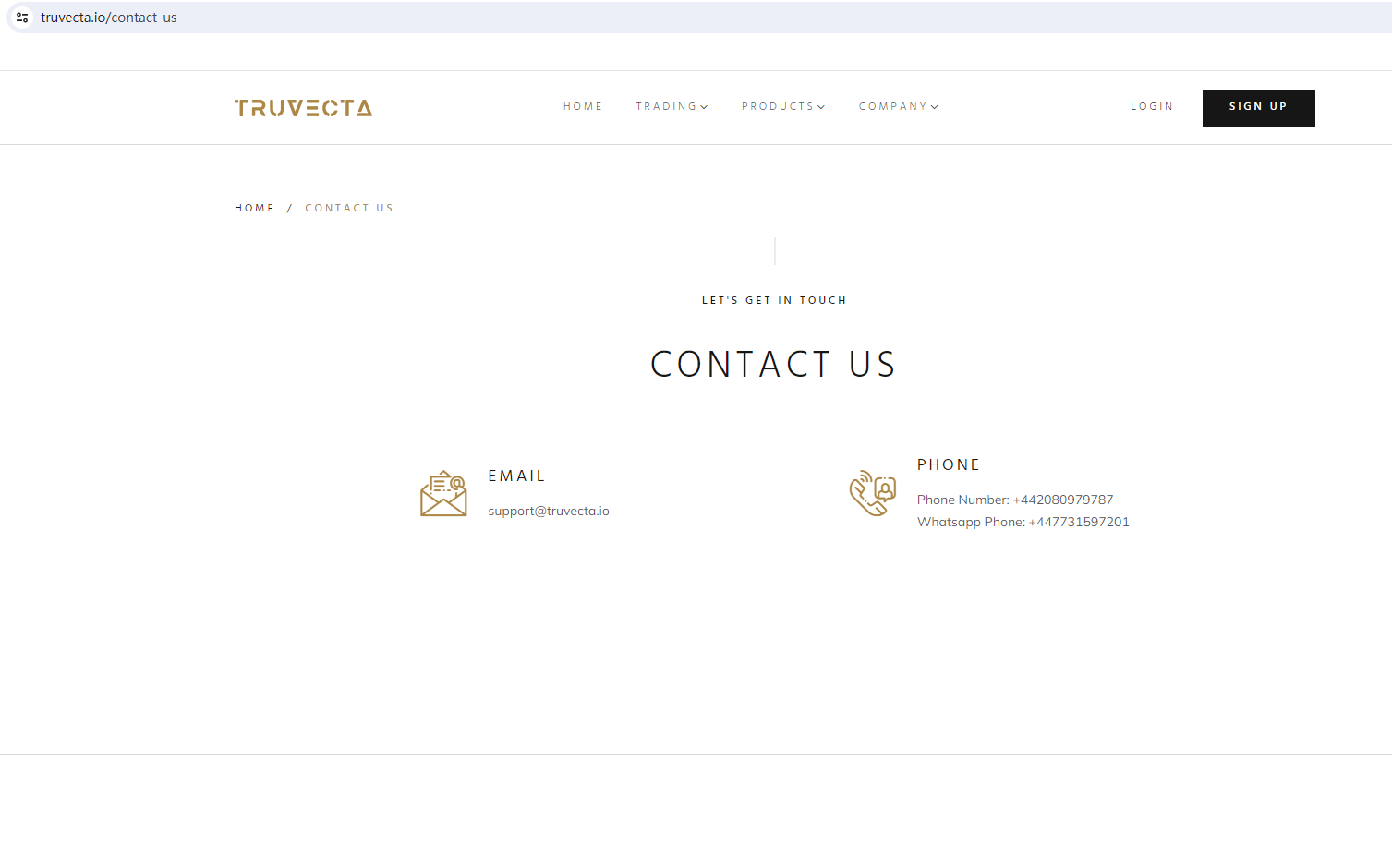 According to its website, the area code of the telephone number displayed on the website is the UK area code +44. Upon investigation, we found that the Financial Conduct Authority (FCA) issued a warning against Truvecta, believing this company might be providing financial services or products without proper authorization in the UK.