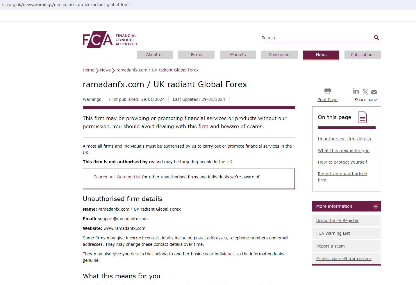 On January, 29, 2024, the Financial Conduct Authority (FCA) issued a warning against UK radiant Global Forex, believing this broker might be providing financial services or products without proper authorization. https://www.fca.org.uk/news/warnings/ramadanfxcom-uk-radiant-global-forex