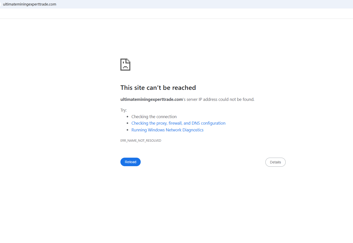 BrokersView found that the domain "https://ultimateminingexperttrade.com/" is currently inaccessible. This is widely regarded as a significant red flag, as the suspension of a broker's website often points to underlying regulatory or operational issues.