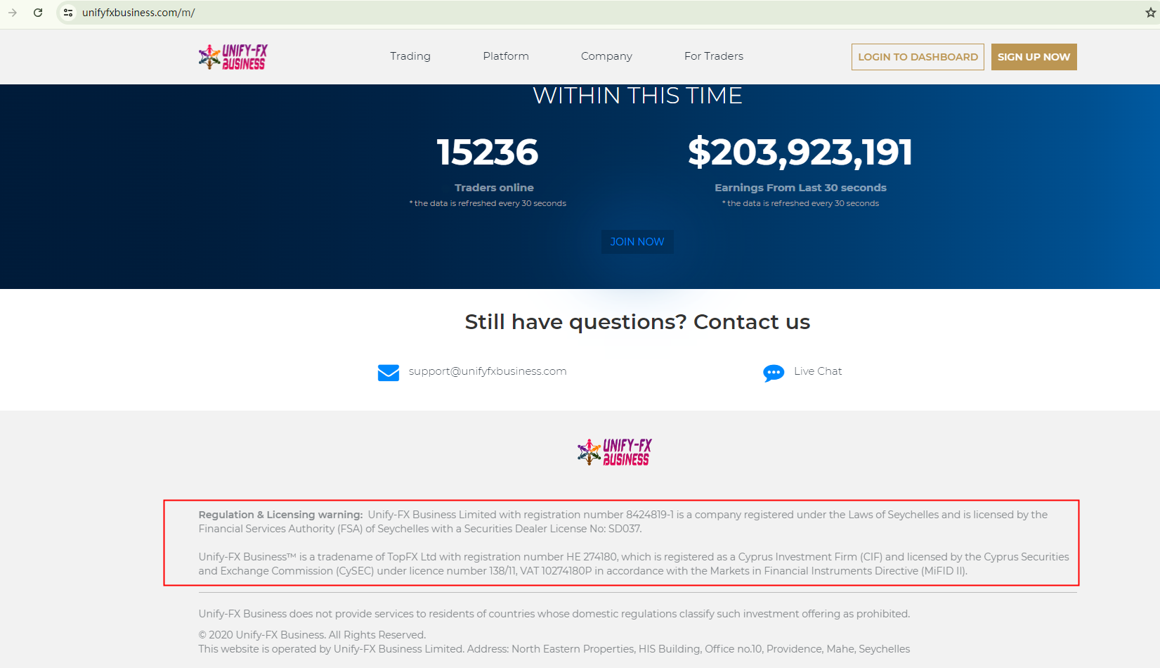 Unify FX Business appears to be a scam.