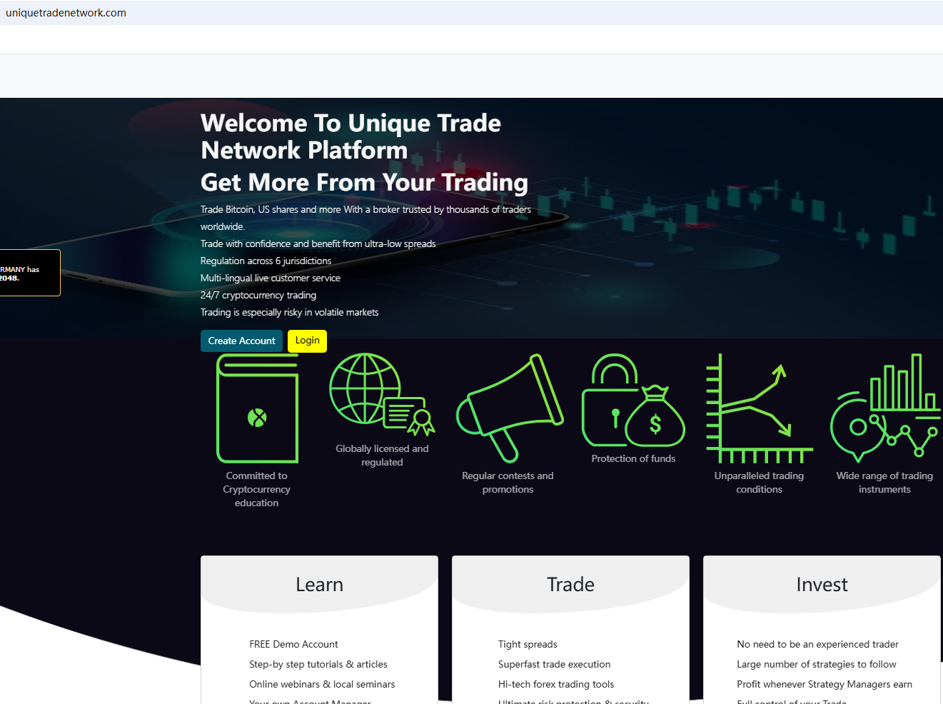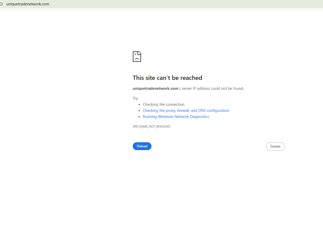 BrokersView found that the domain "https://uniquetradenetwork.com/" is currently inaccessible. This is widely regarded as a significant red flag, as the suspension of a broker's website often points to underlying regulatory or operational issues.
