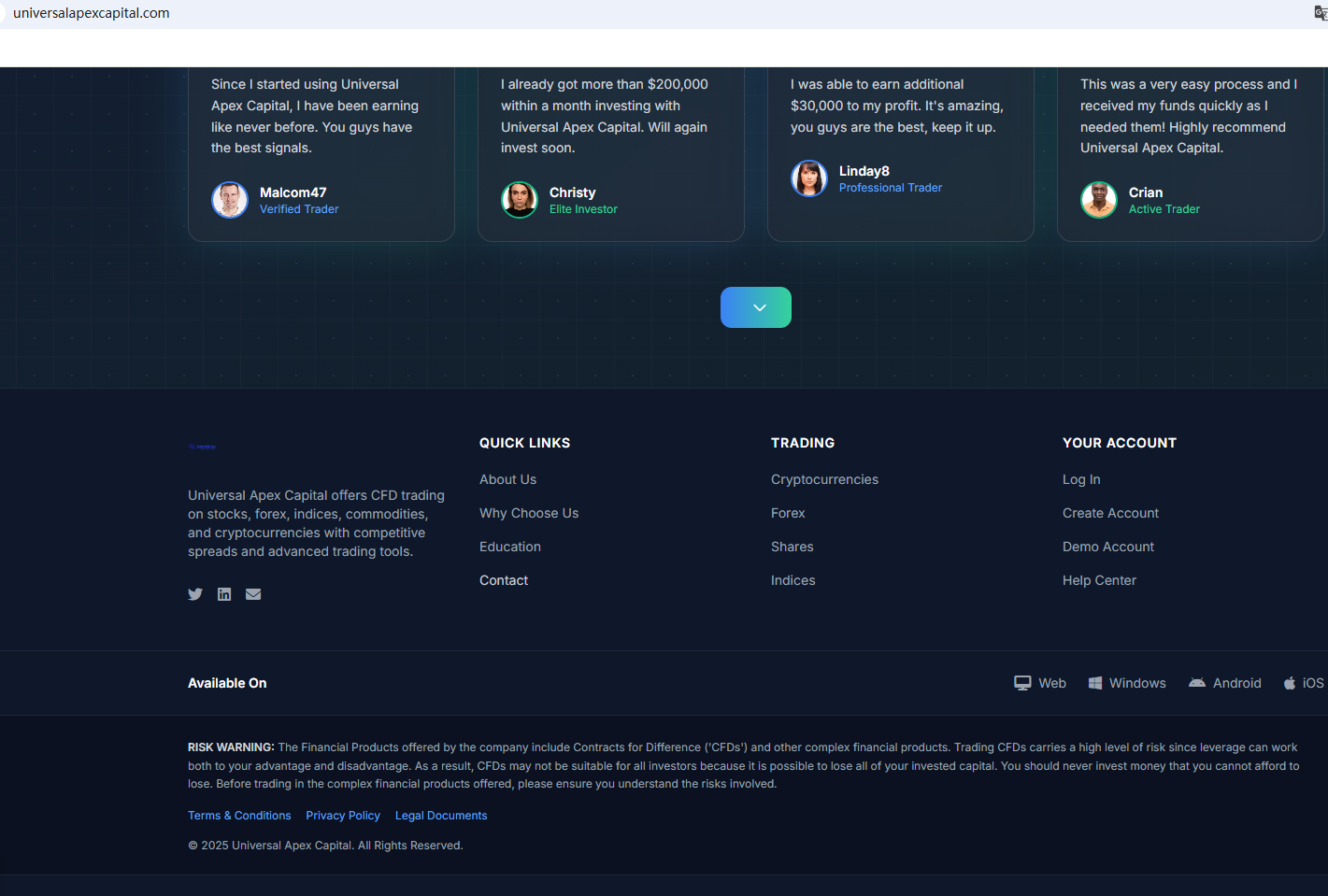 On Oct 16, 2025, the Financial Conduct Authority (FCA) issued a warning regarding UNIVERSAL APEX CAPITAL, suspecting that this company may be offering financial services or products without the necessary authorization. https://www.fca.org.uk/news/warnings/universal-apex-capital