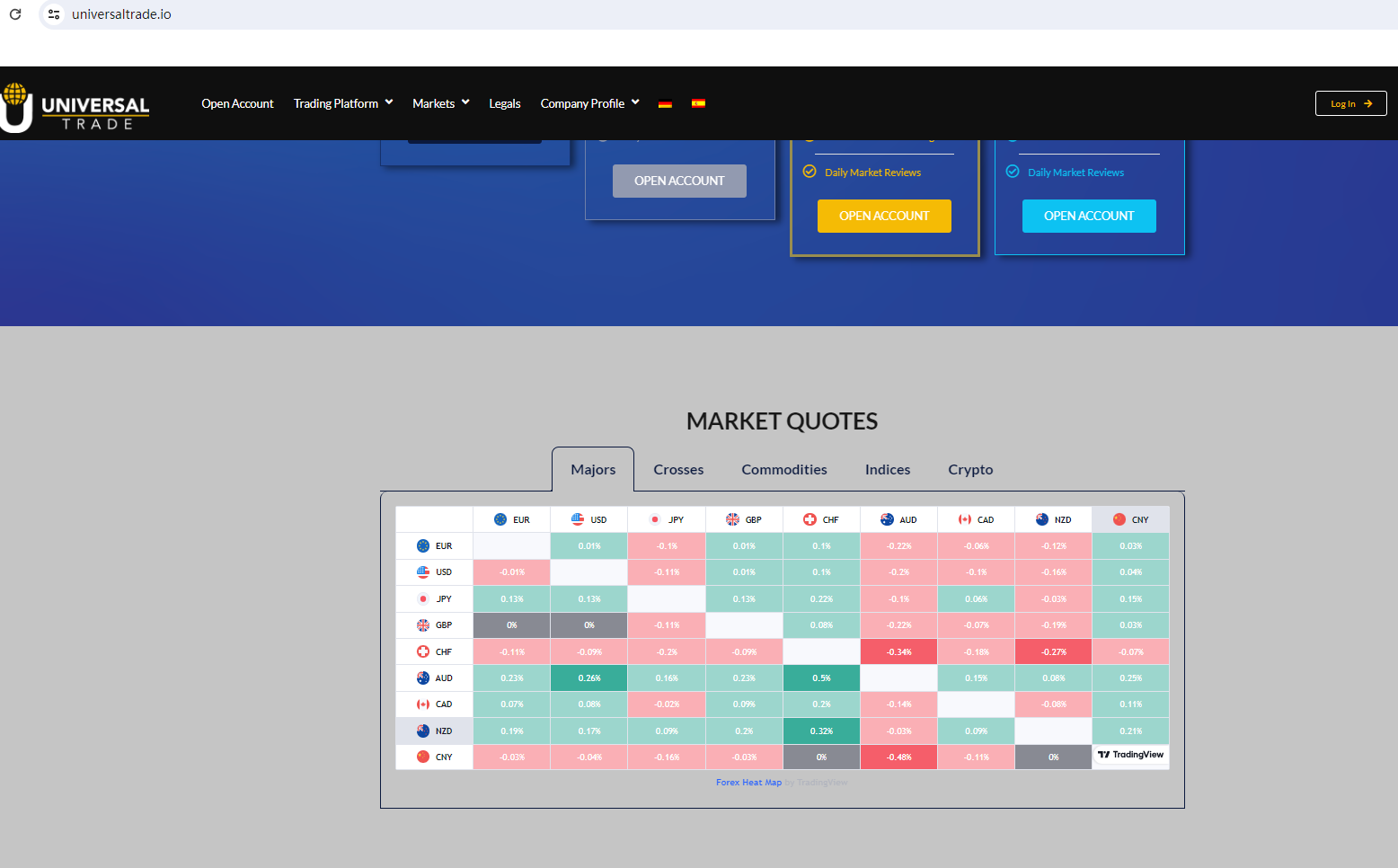 BrokersView found that the domain "https://universaltrade.io/" is currently inaccessible. This is widely regarded as a significant red flag, as the suspension of a broker's website often points to underlying regulatory or operational issues.