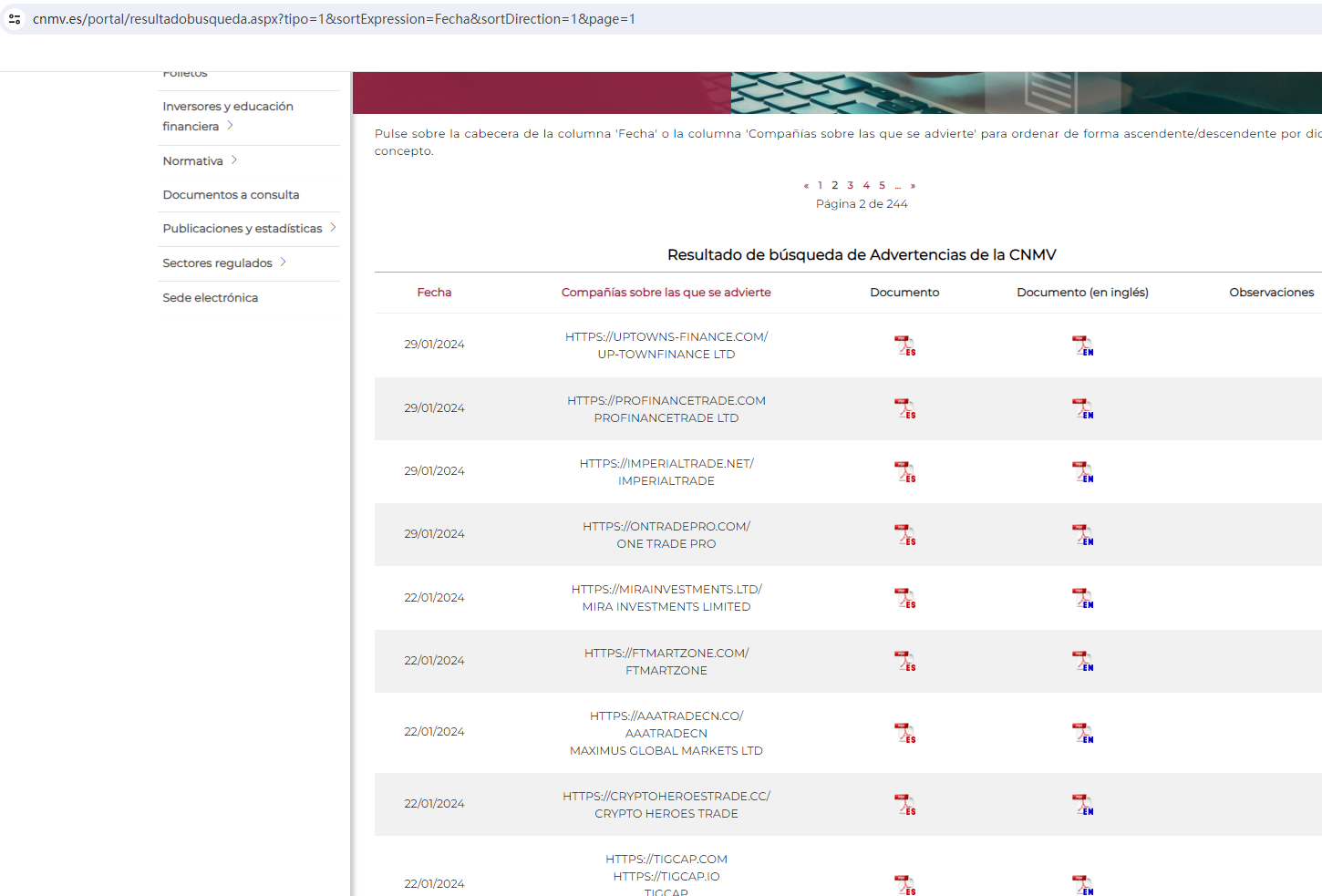 The Comisión Nacional del Mercado de Valores (CNMV) added UPTOWNFINANCE LTD to its warning list for providing investment services without authorization.