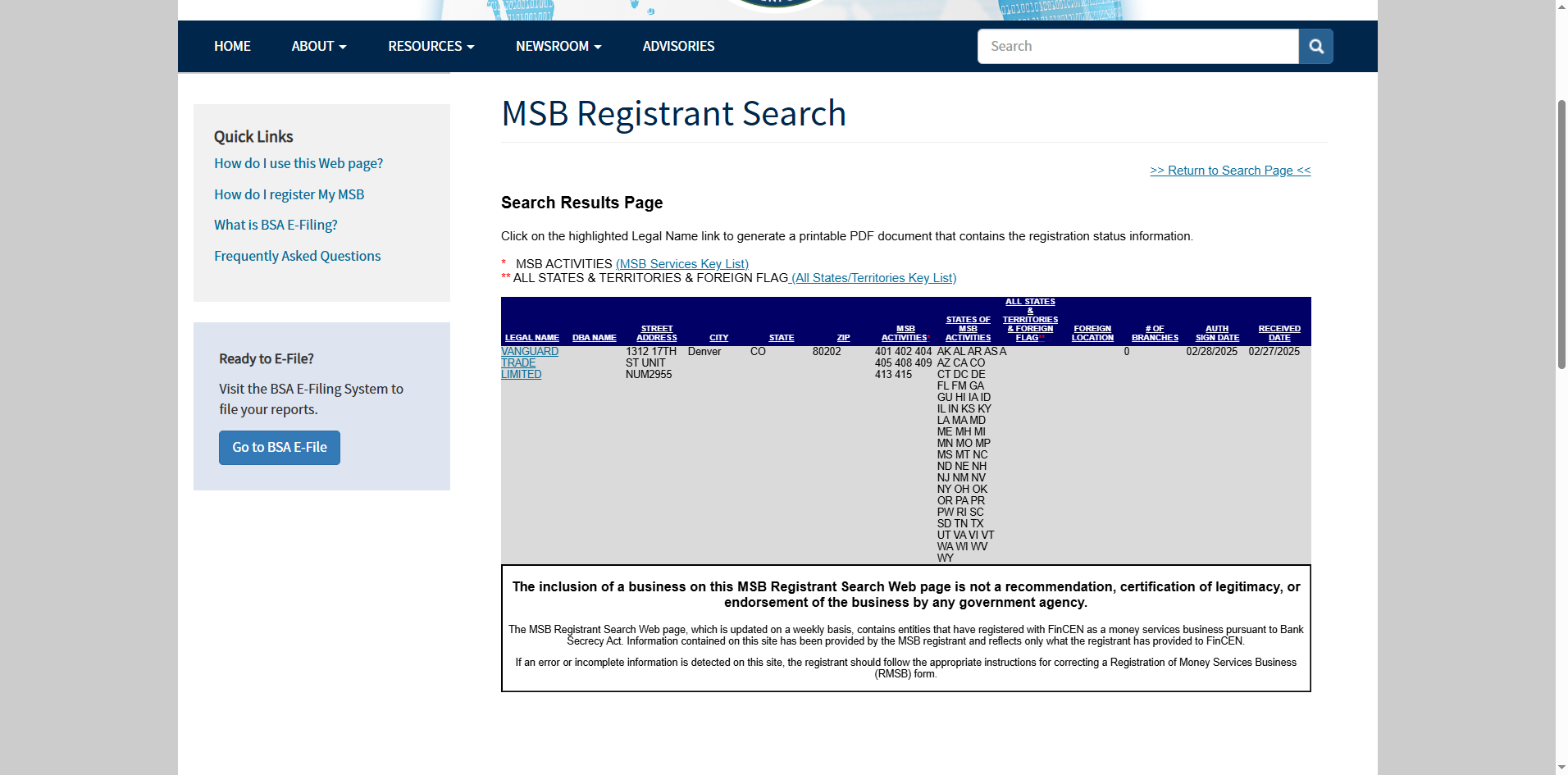 VanguardTrade claims to be regulated by the Financial Conduct Authority (FCA) and states it holds a Money Services Business (MSB) license from the Financial Crimes Enforcement Network (FinCEN), our investigation reveals significant discrepancies. No registration for VanguardTrade appears in the official FCA register. Although a matching MSB registration was found with FinCEN, it is important to note that FinCEN does not regulate forex brokers or provide oversight for trading activities. These findings indicate that VanguardTrade operates without proper regulatory supervision and may be involved in fraudulent activity.