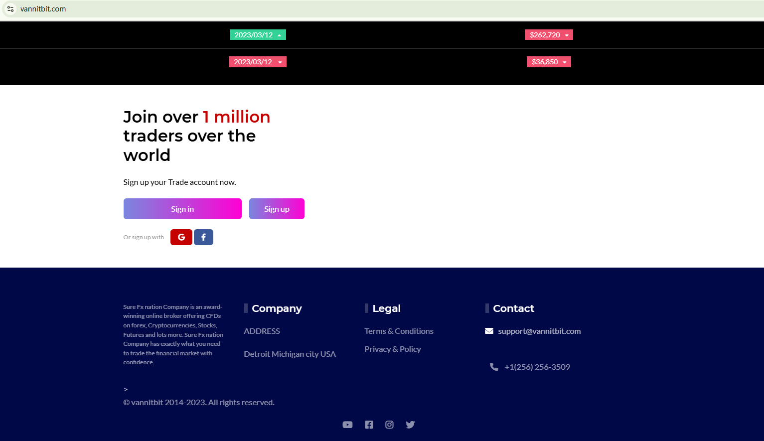 BrokersView found that the domain "https://www.vannitbit.com/" is currently inaccessible. This is widely regarded as a significant red flag, as the suspension of a broker's website often points to underlying regulatory or operational issues.