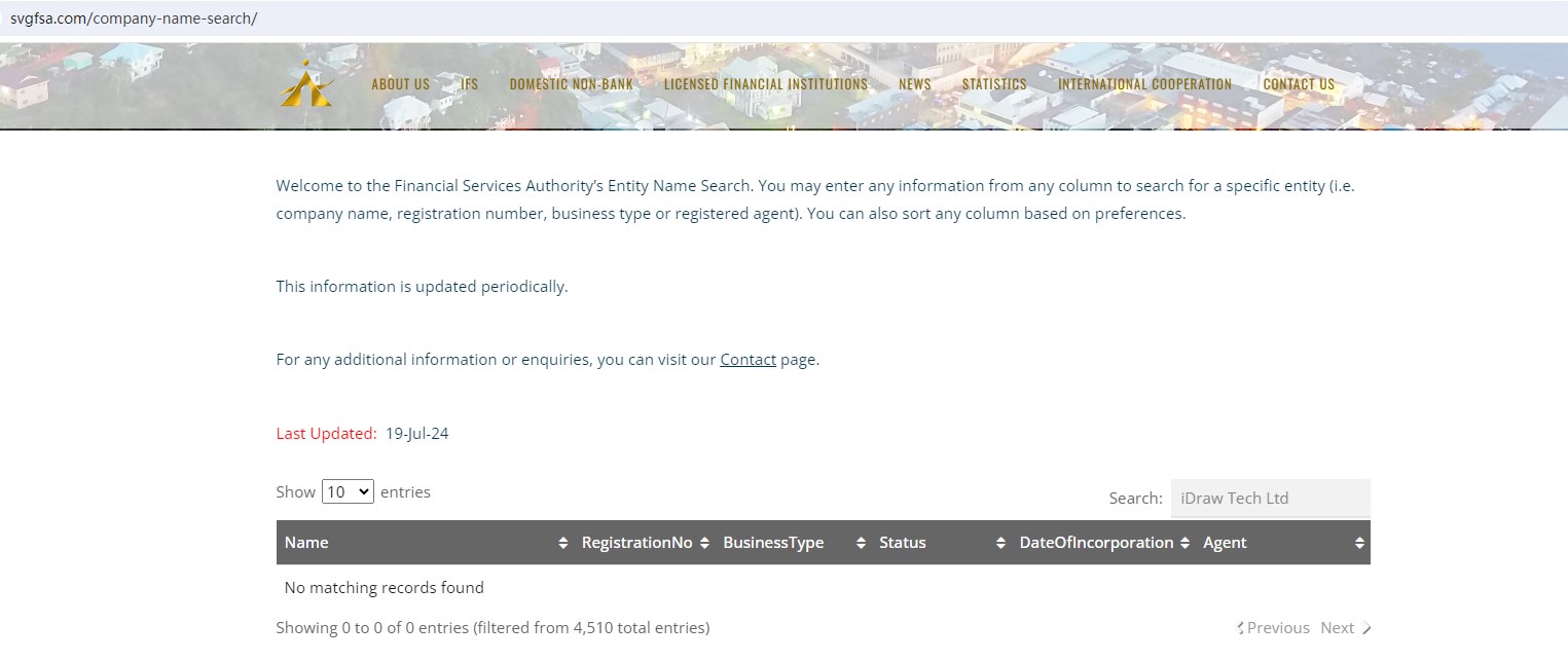 Upon investigation, we didn't find the business registration of VarinFX / iDraw Tech Ltd with the Financial Services Authority in St. Vincent and the Grenadines(SVG FSA) , an offshore authority that doesn't license financial derivative trading brokerage activities.