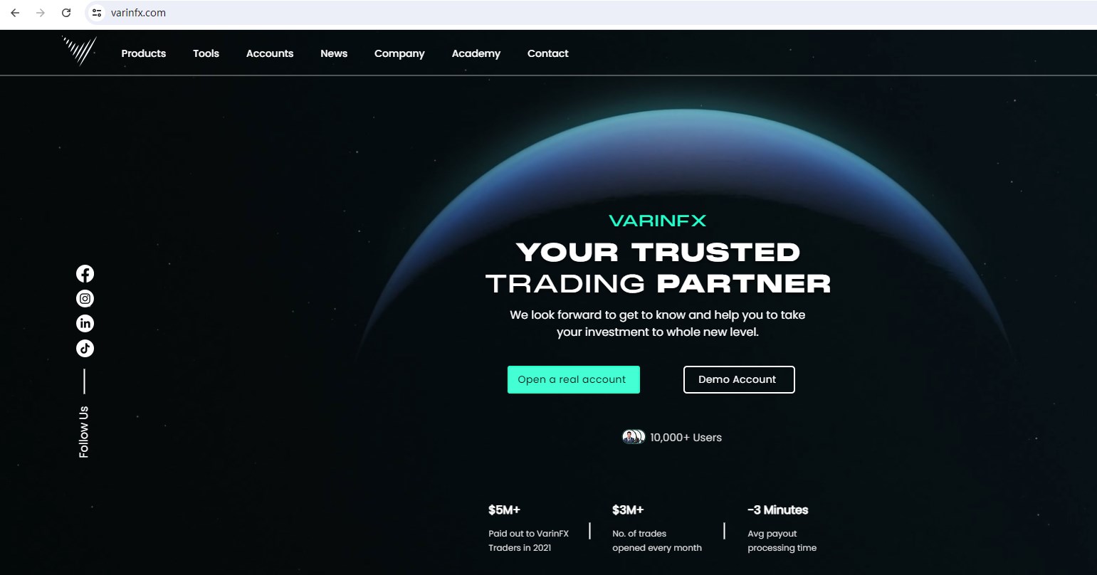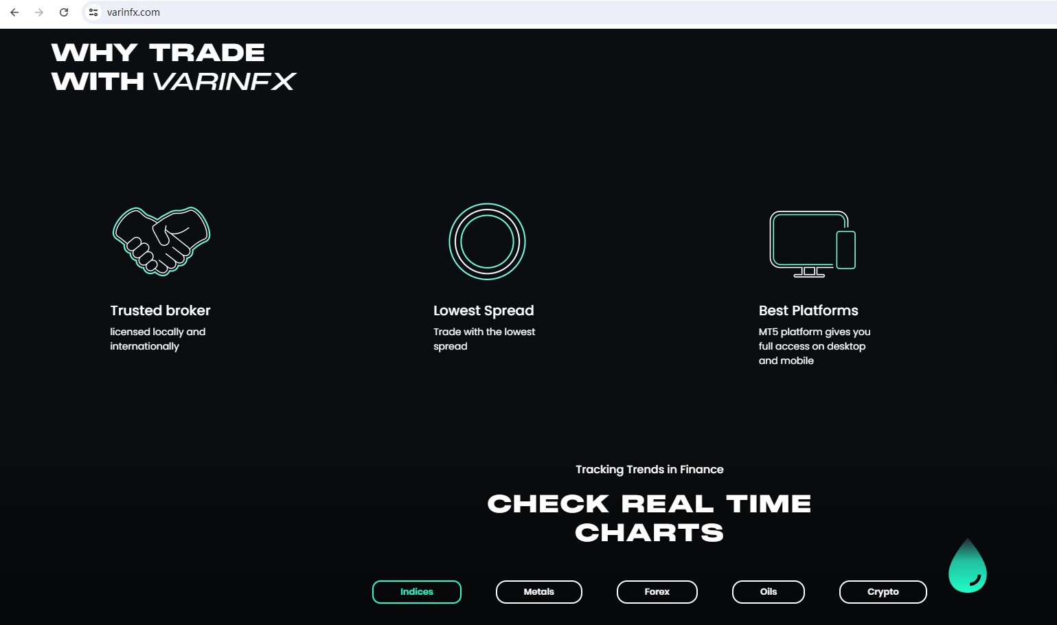 VarinFX claims to be owned and operated by iDraw Tech Ltd, is a broker certified by Saint Vincent and the Grenadines Business Company with license number 25412 BC 2019, offering wide range of financial services, including Indices, Metals, Forex, Oil, Cryptocurrencies and more instruments in global markets.