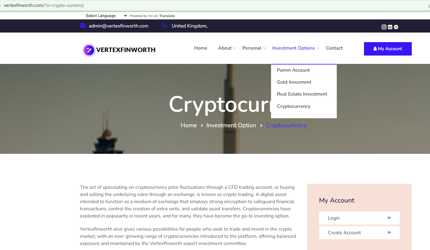 Vertexfinworth claims to be a trading platform in the UK for investors to trade cryptocurrencies, gold, and other assets.