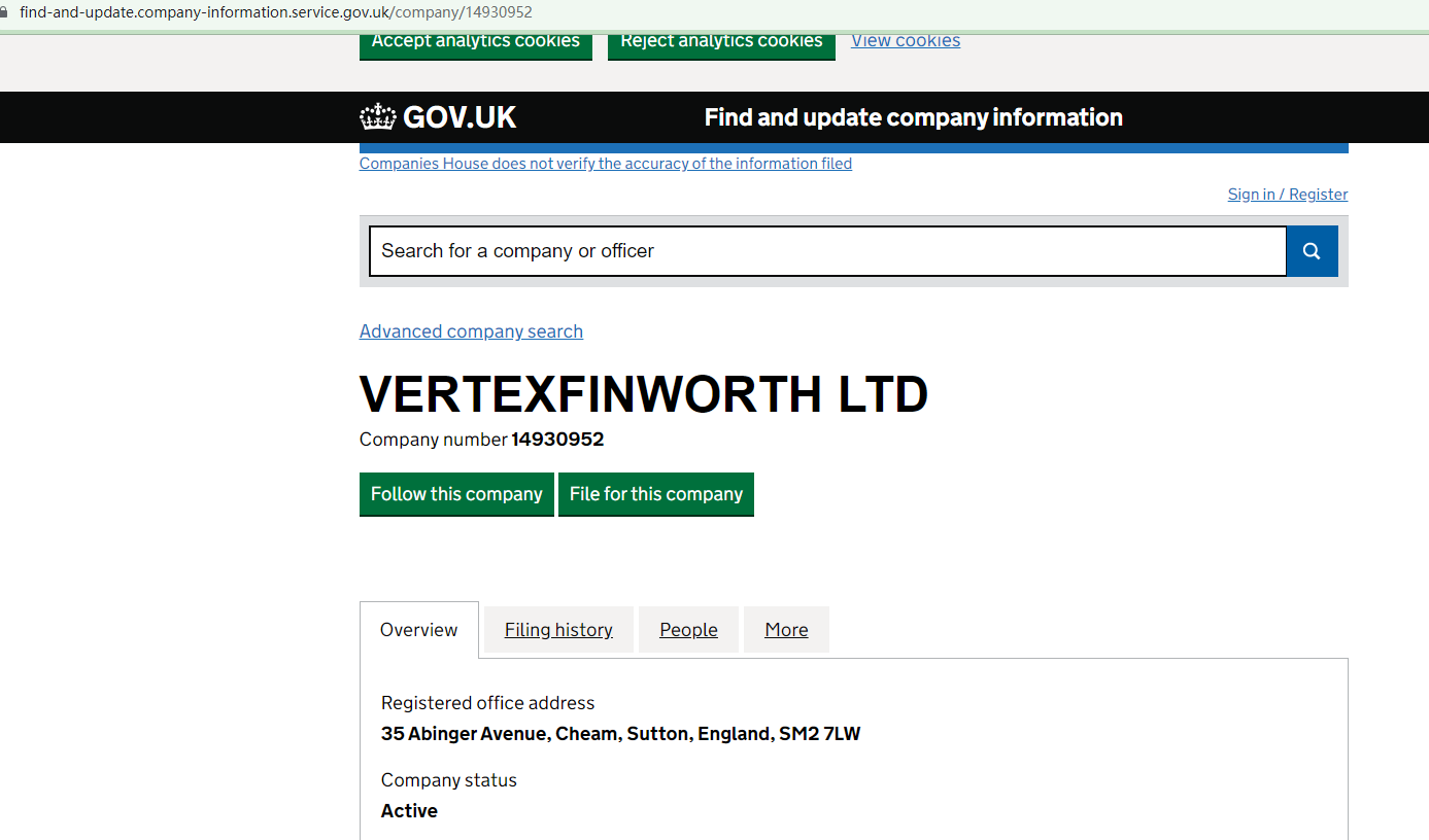 On October 20, 2023, the Financial Conduct Authority (FCA) issued a warning against Vertexfinworth, demonstrating that it is an unauthorized firm soliciting investors in the UK. https://www.fca.org.uk/news/warnings/vertexfinworth