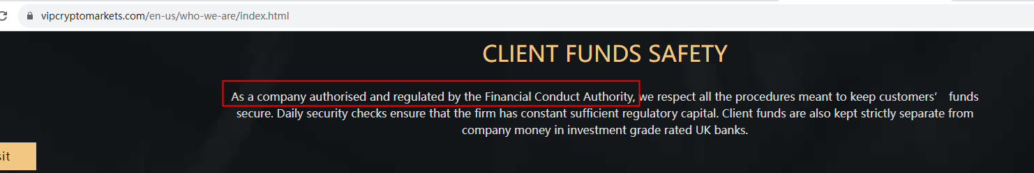 The truth is that VIP Crypto Markets is not regulated by any regulators. Letting it hold or control investors' money is unsafe, and the money can not be protected by any laws.