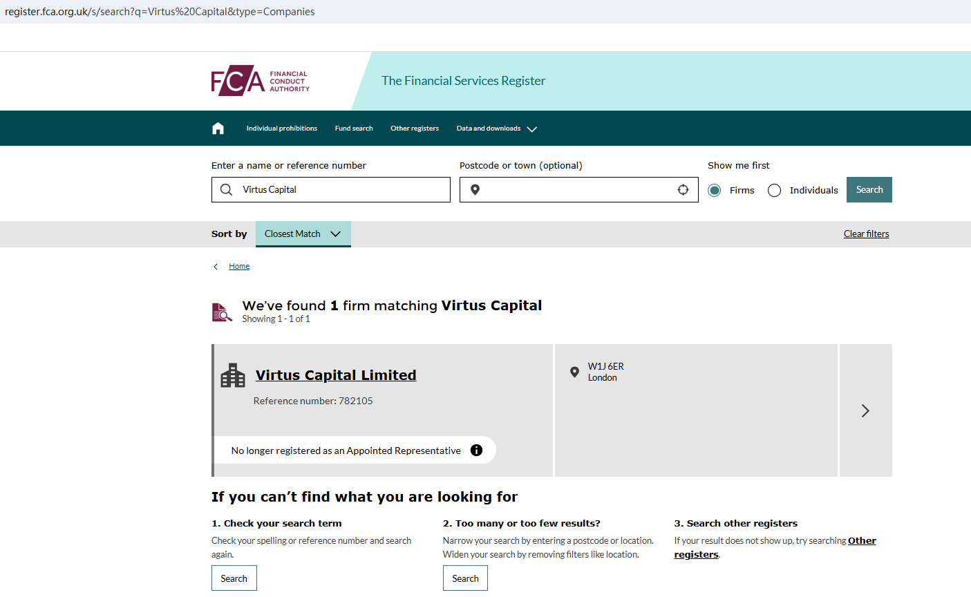 In essence, Virtus Capital is not regulated by any governing body. Entrusting it with investors' funds is highly risky, as there are no legal protections in place to safeguard the funds. Virtus Capital appears to be a scam.