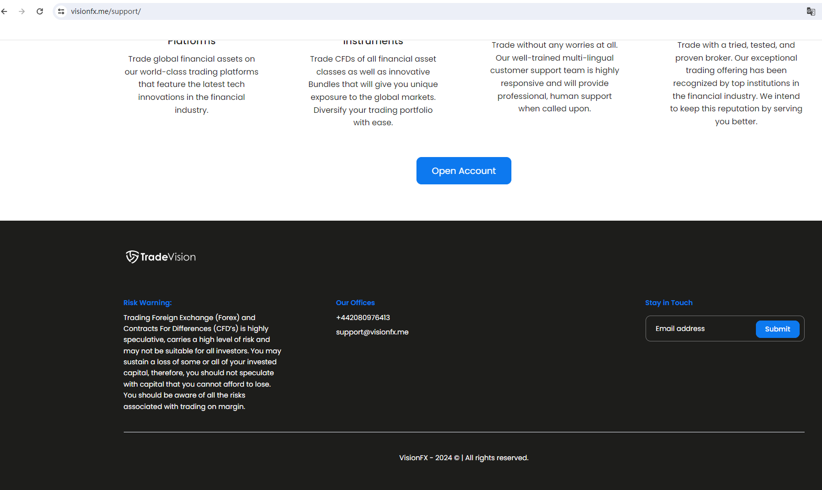 On 14, February 2024, the Ontario Securities Commission (OSC) issued a warning that VisionFX aka TradeVision was providing financial services or products without authorisation. You may visit: https://www.osc.ca/en/investors/warnings/visionfx-aka-tradevision