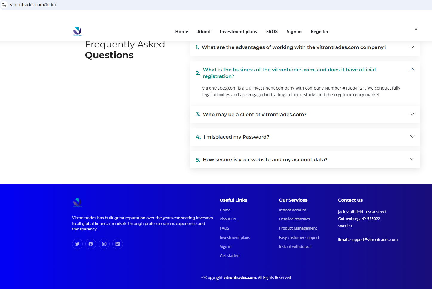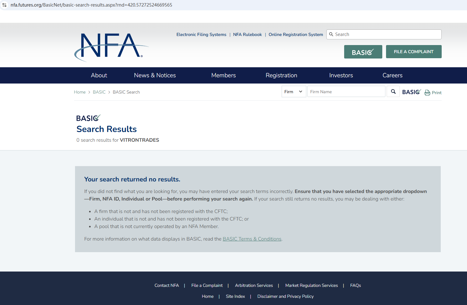 In essence, vitrontrades is not regulated by any governing body. Entrusting it with investors' funds is highly risky, as there are no legal protections in place to safeguard the funds.