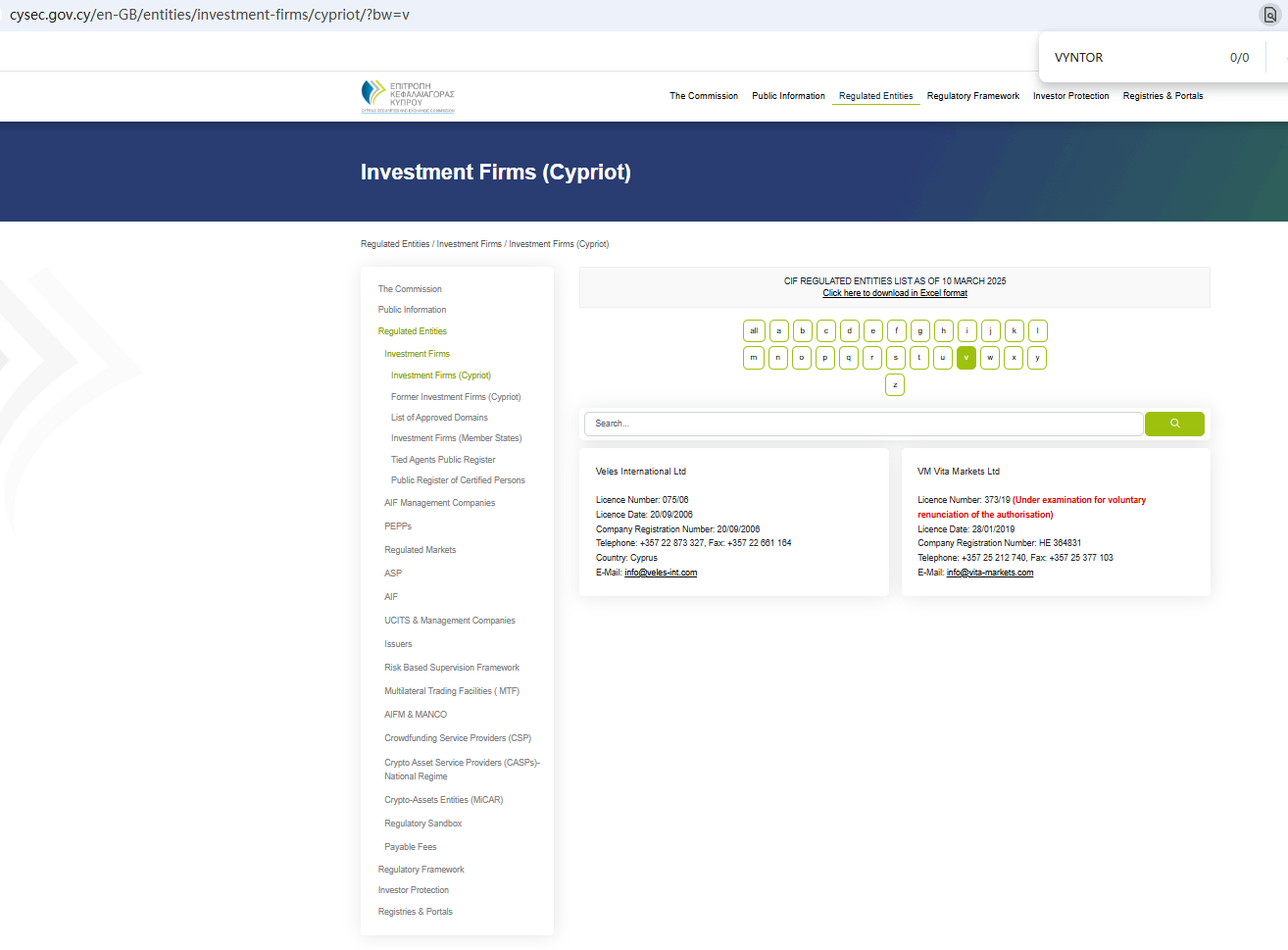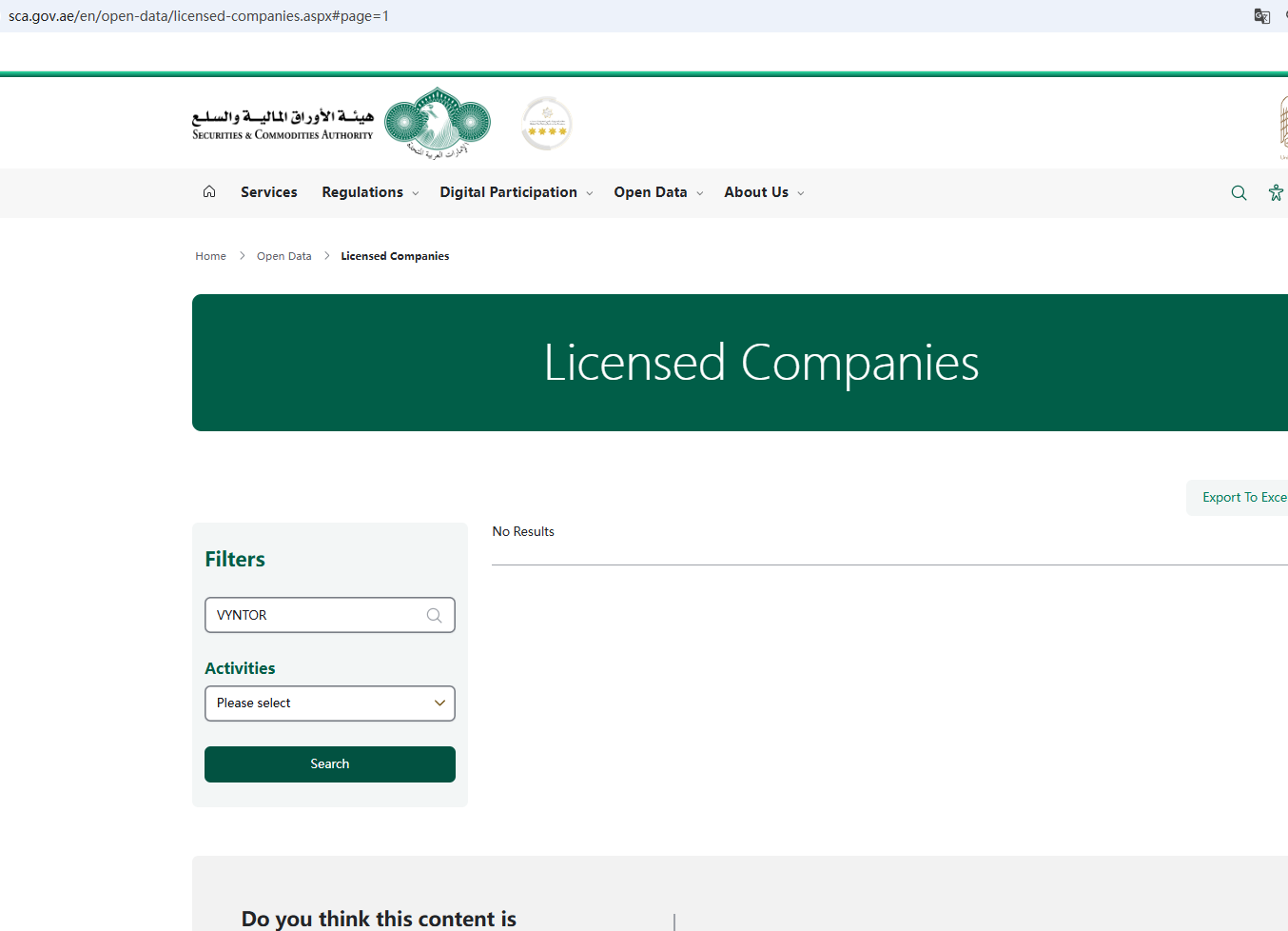 VYNTOR is not regulated by any authority. Therefore, VYNTOR is a scam.