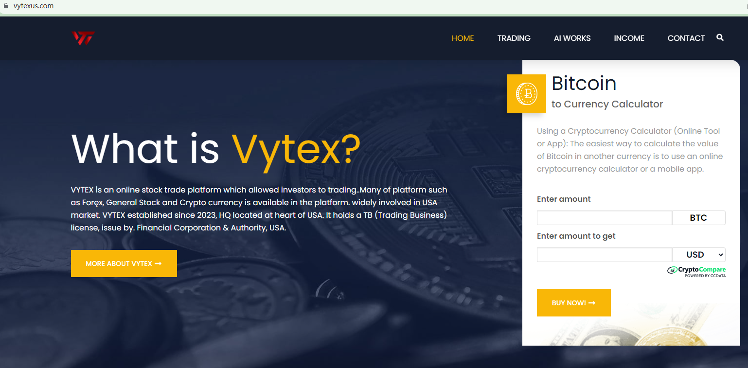 In essence, Vytex is not regulated by any governing body. Entrusting this broker with investors' funds is highly risky, as there are no legal protections in place to safeguard the funds.