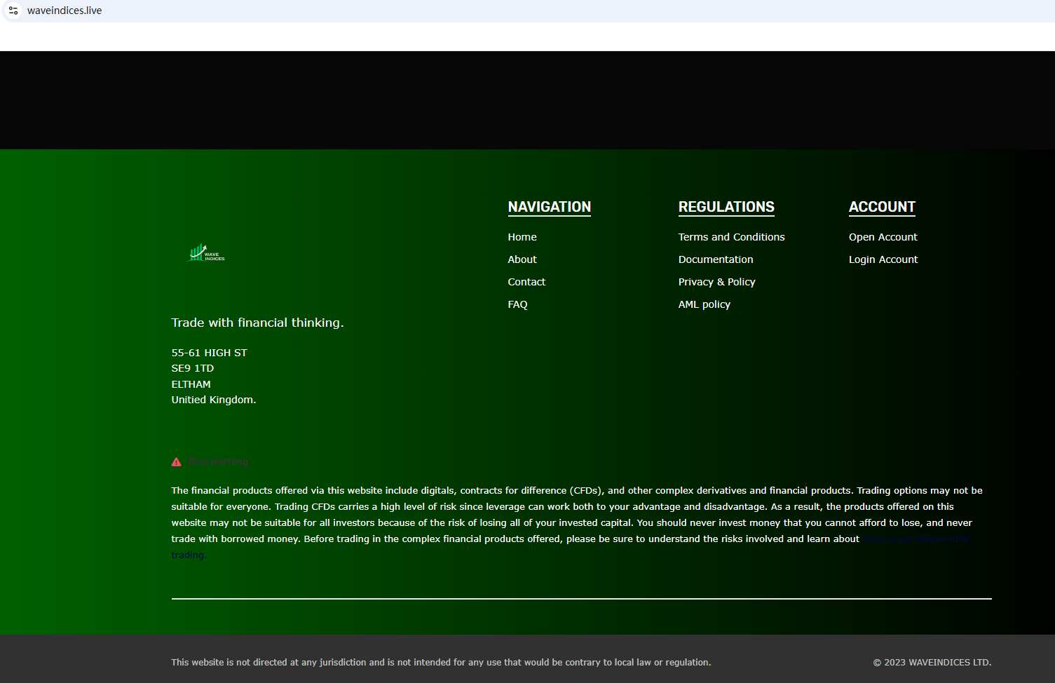 The website uses a common template for scam websites and has been marked by Brokersview many times before. Such websites usually have similar website designs and website scripts. The company claims to be located in the UK and registered with Companies House (CH). As we all know, if you want to exercise foreign exchange rights in the UK, you must obtain permission from the Financial Conduct Authority (FCA). However, we found that the United Kingdom Financial Conduct Authority (FCA) issued a warning against WAVE INDICES, believing this company might be providing financial services or products without authorisation in the UK.